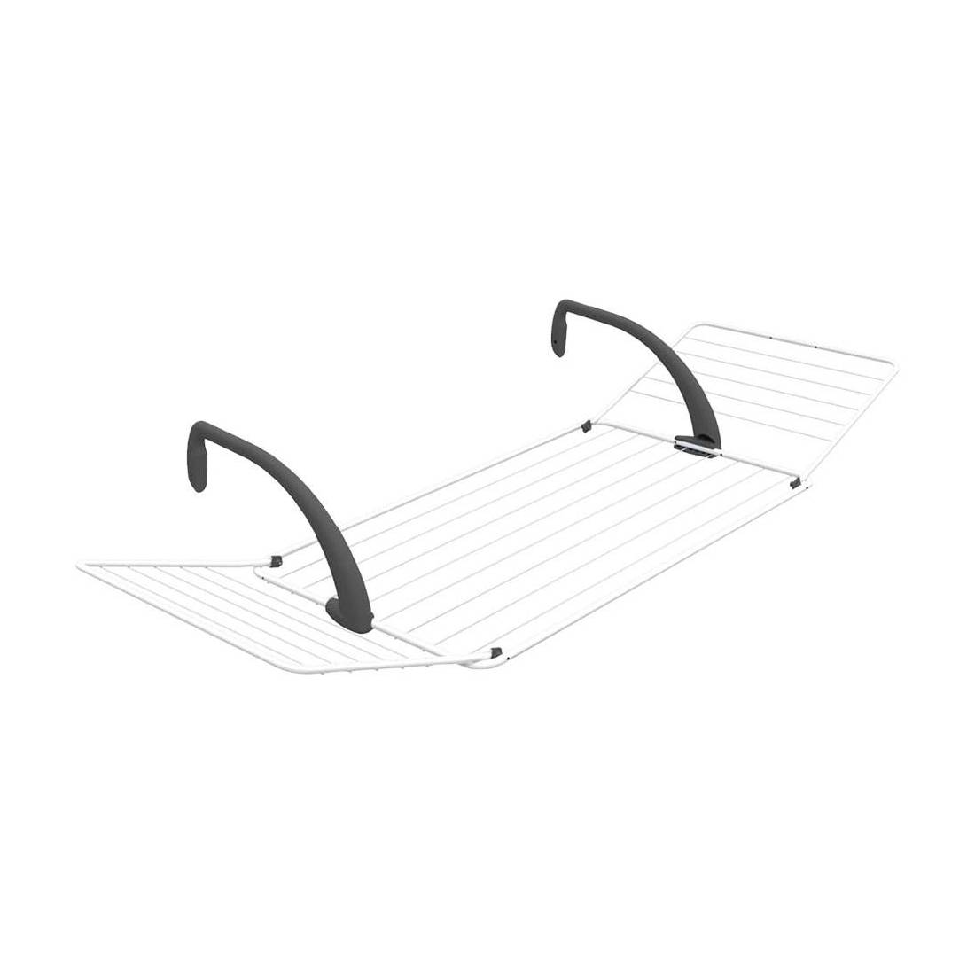 Stendibiancheria da balcone in acciaio e resina con ali. Dotato di bracci in resina regolabili e ripiegabili, con struttura anti flessione e torsione. Spazio di stenditura 18 mt.