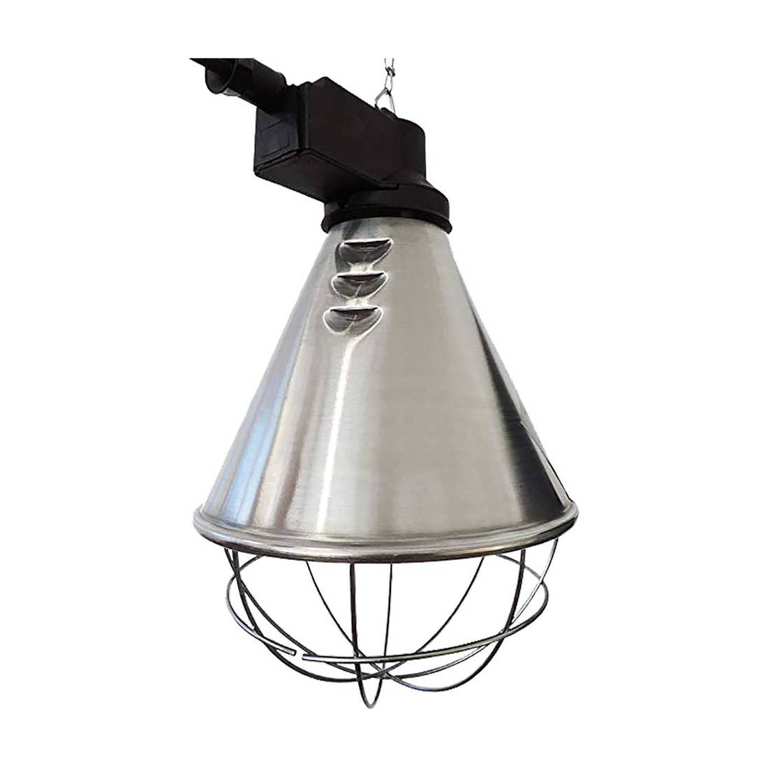 Apparecchio indispensabile per garantire calore a piccoli animali di varie specie che necessitano di tepore per i primi tempi dopo la nascita. Copertura in alluminio Ø 21 cm, completo di catena fissaggio (forza di trazione max. 20 kg). A 6 fessure di ventilazione per una migliore circolazione d'aria. Fornito senza lampada.