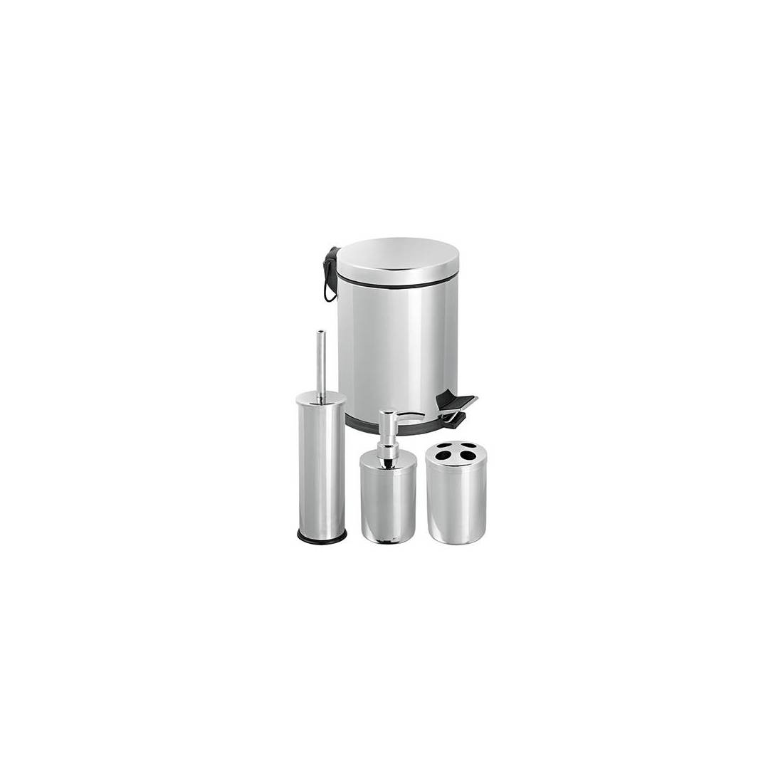 Set bagno completo in acciaio inox cromato composto da pattumiera Daphne cromata 5L (121-R5000-05) - portascopino Erica a terra (121-C2503-P) - dispenser di sapone e porta spazzolini.(DianFlex) Misura: Cromo
