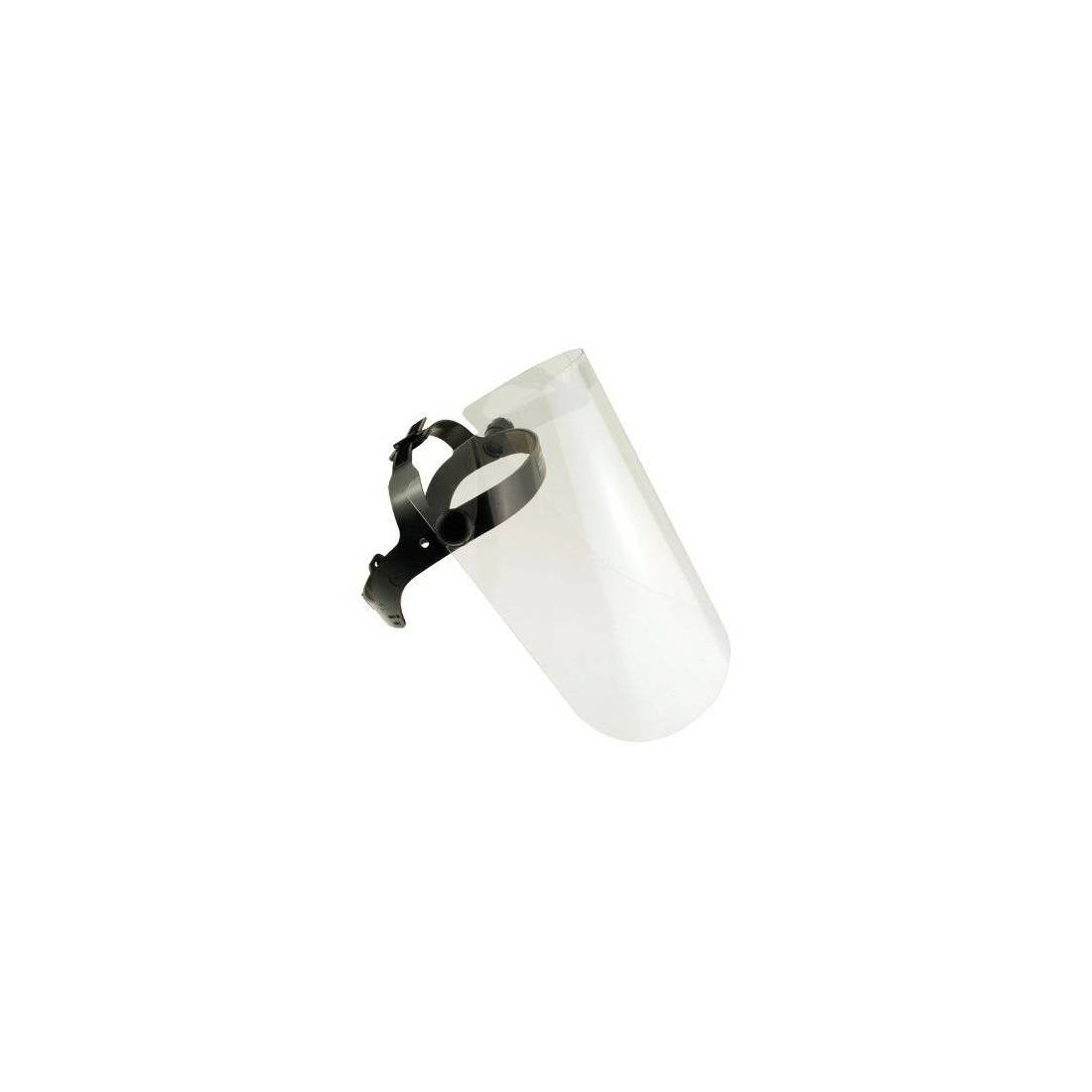 Visiera protettiva con policarbonato con reggicapo. Regolabile. Ampia superficie protettiva.