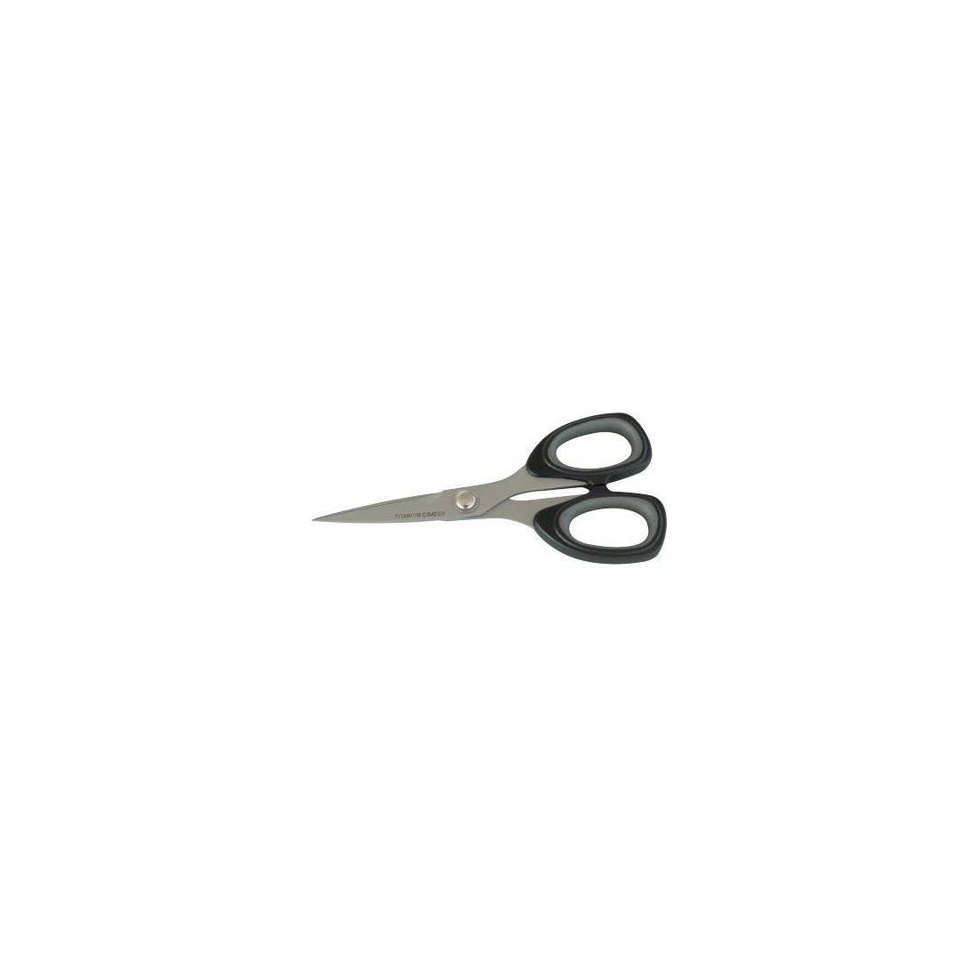 Con lame in acciaio inox rivestite al titanio. Impugnatura in nylon con inserti in gomma.