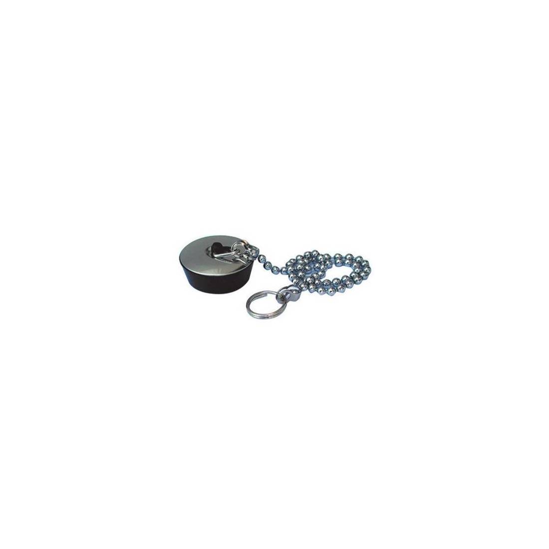 Tappo in gomma nera per lavabo con catena lunga cm. 33 a perline cromate.(DianFlex) Misura: Diam. 31 mm.