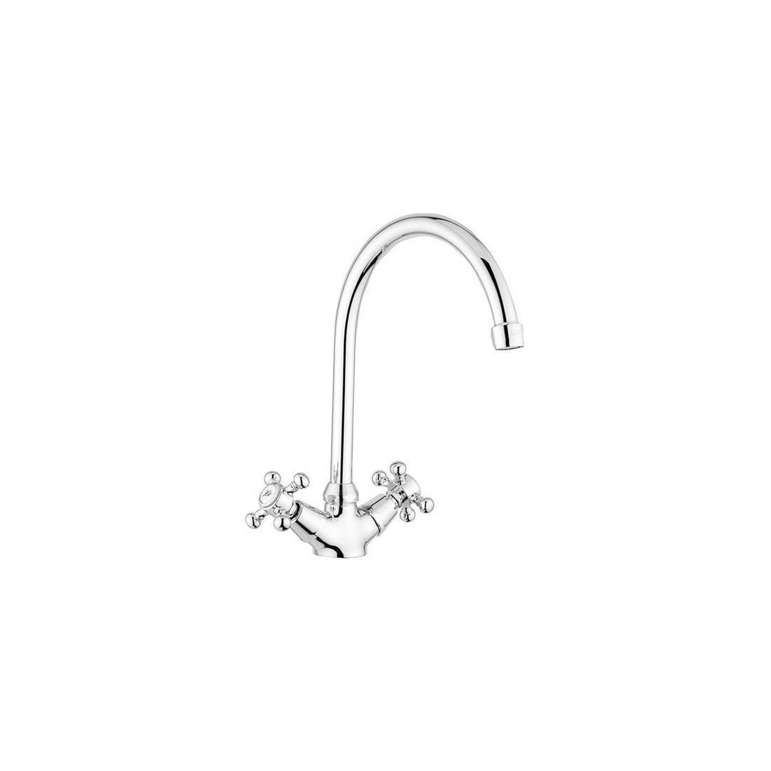 Miscelatore lavello monoforo con canna orientabile completo di: aeratore M22x1; set 2 flessibili inox 3/8"G. Con canna a ombrello D. 18x185 mm.(DianFlex) Misura: Cromo