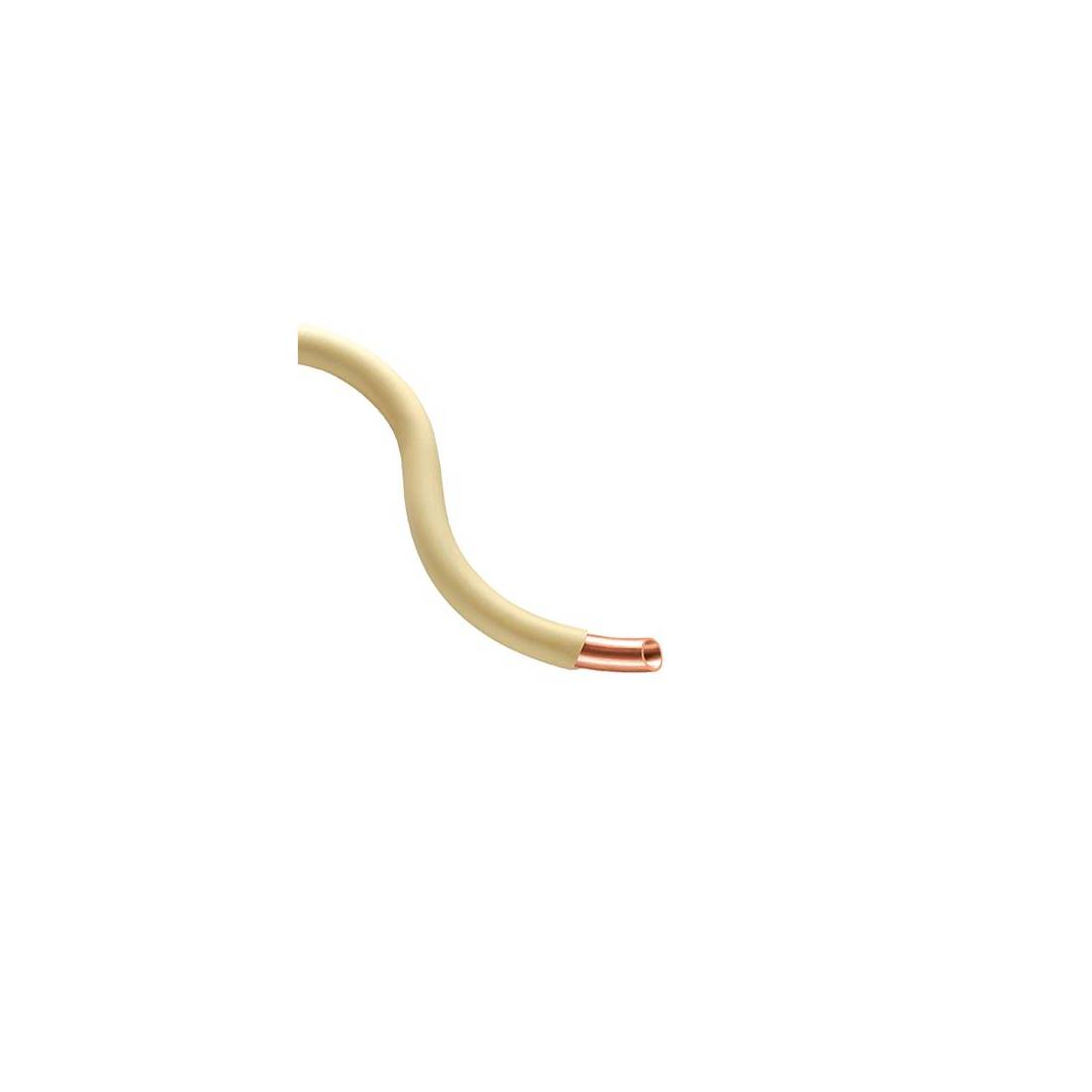 Tubo di rame in rotoli rivestito PLAST. Lega Rame Cu-DHP 99,90 min. Rivestimento in polivinile di cloruro PVC con una speciale guaina stellare. Colore avorio. Spessore rivestimento 1,5 mm ca. Resistenza al fuoco: Autoestinguente.(DianFlex) Misura: Diam. 10 x 1