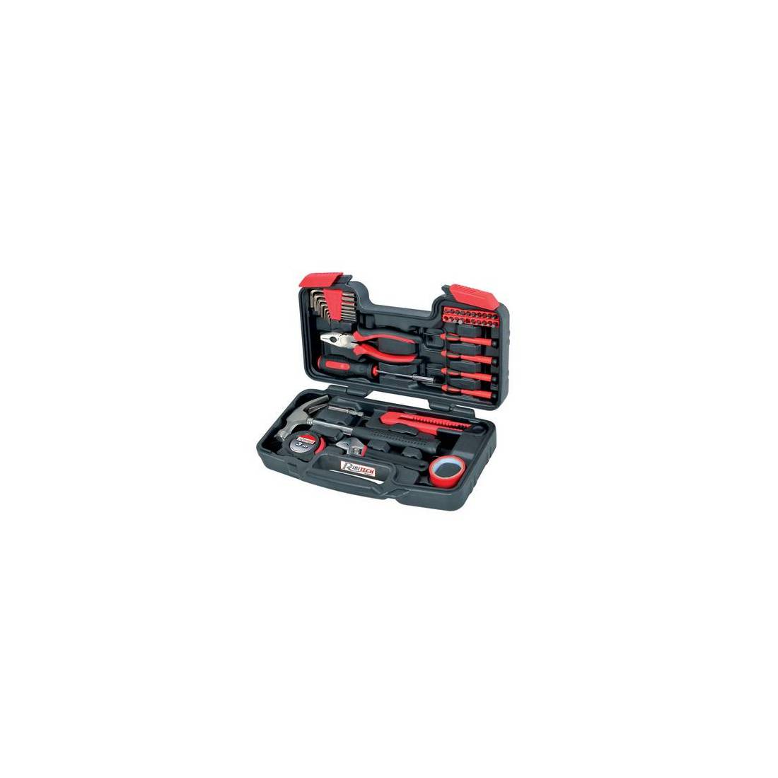Valigetta in PVC composta da: Martello da carpentiere. Pinza universale in acciaio al carbonio L. 150 mm. Chiave a rullino in acciaio al carbonio L. 150 mm. Cacciavite portainserti magnetico. Porta inserti magnetico 60 mm. Cutter lama 18 mm. Flessometro autobloccante 3 m. Nastro isolante 3 m. 4 cacciaviti di precisione. n. 20 inserti di fissaggio 25 mm. 3,4,5,6,PH1, PH2, PH3, PZ1, PZ2, PZ3, T10, T15, T20, T25, T27, T30, H3, H4, H5, H6. 8 chiavi 6 sezioni: 1,5 - 2 -2,5 -3 - 4 -5 -5,5 -6.(DianFlex) Misura: 40 pz