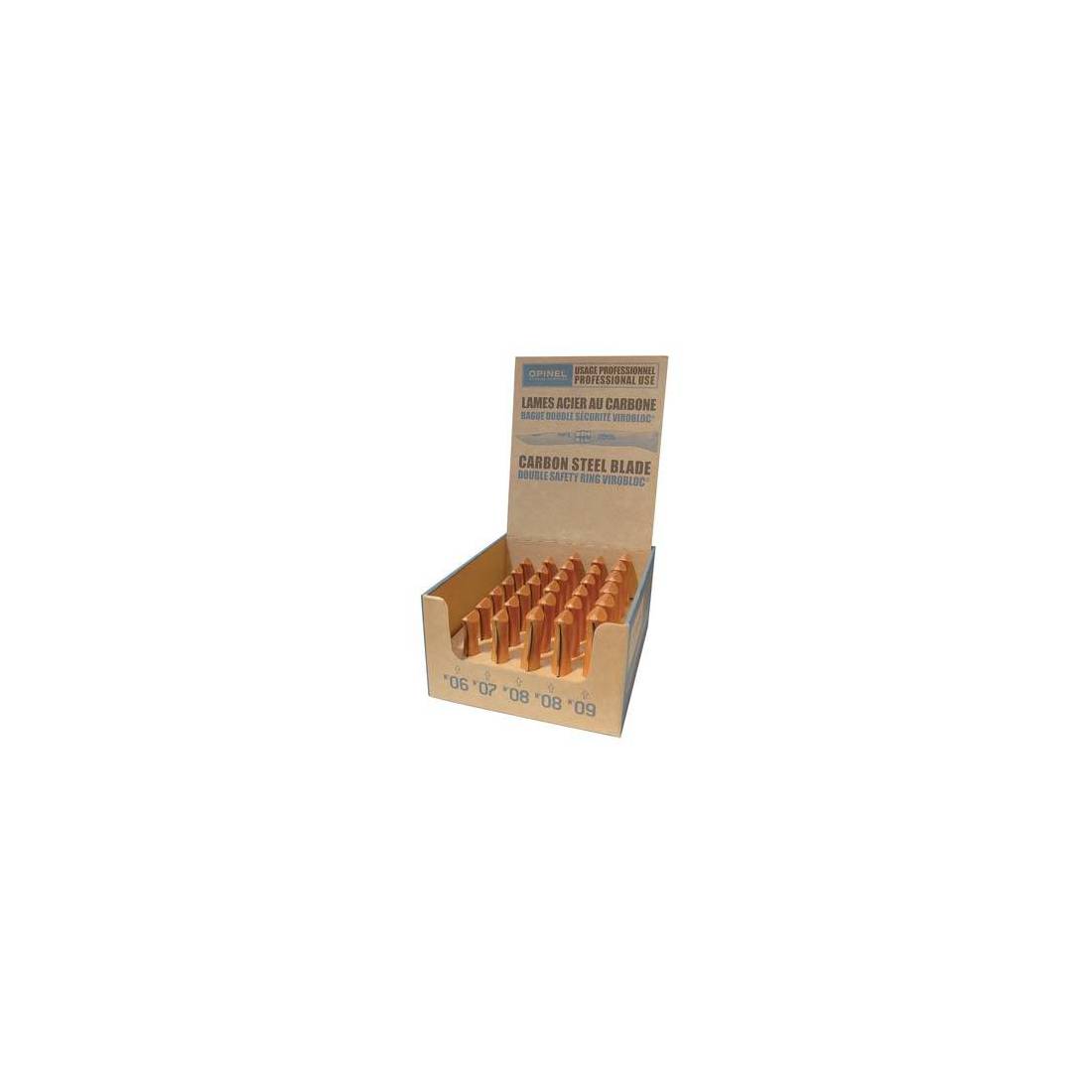 Espositore da banco per coltelli Opinel. Completo di 30 pezzi assortiti, con sistema di sicurezza Virobloc. Composto da: Pz. 6 di n° 6 Art. 1255106, Pz. 6 di n° 7 Art. 1255107, Pz. 12 di n° 8 Art. 1255108 e Pz. 6 di n° 9 Art. 1255112.