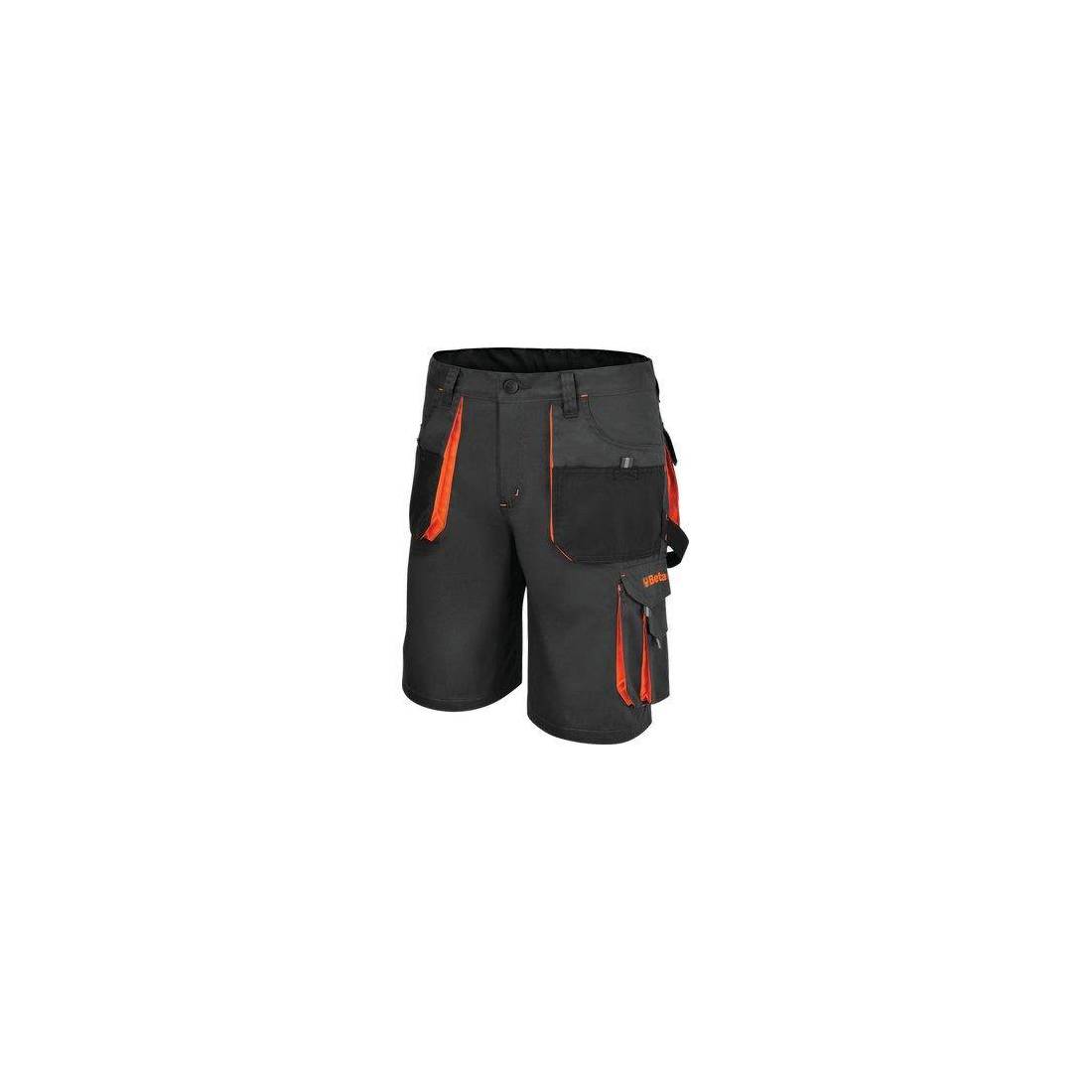 65% poliestere e 35% cotone da Gr. 180. Inserti in “Oxford” poliestere/PU da Gr. 220. Con due ampie tasche anteriori dotate di inserti porta minuteria con chiusura a strappo. Tascone laterale sinistro con chiusura a strappo dotato di taschino porta cellulare ed inserto porta badge. Tasconi posteriori con rinforzi in “Oxford” e chiusura a strappo. Tasca porta metro e nastro porta martello. Colore grigio con inserti arancione. Utilizzo estivo.