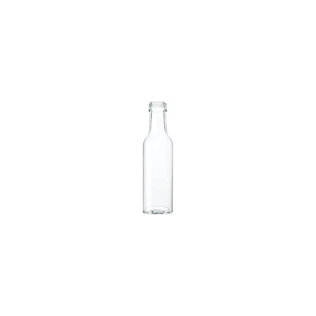 In vetro. Con collo filettato per tappo a vite.