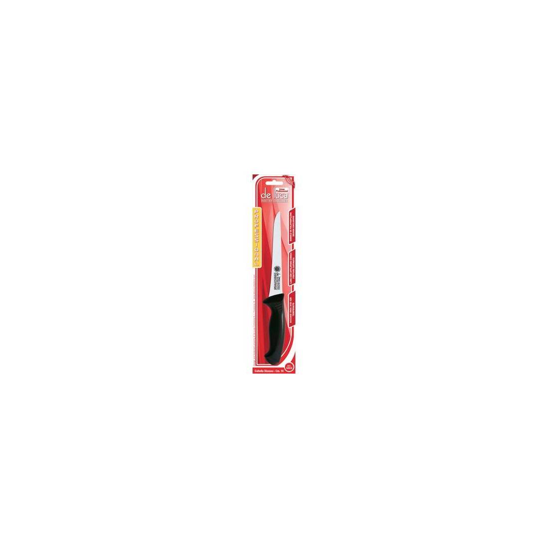 Lama in acciaio inox AISI 420 temperato. Con affilatura conica e finitura satinata. Manico in polipropilene di colore nero.