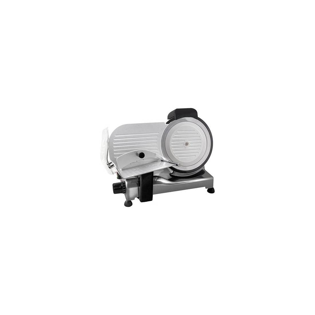 Basamento in alluminio pressofuso verniciato effetto acciaio. Lama professionale in acciaio temperata e rettificata, con anello fisso di protezione. Premisalumi in fusione di alluminio con puntine in acciaio. Paralama, piatto portasalumi e vela in fusione di alluminio con sistema di pulizia facilitata. Albero portalama con doppio cuscinetto a sfere. Motore professionale ventilato. Interruttore di sicurezza. Regolazione spessore taglio da Mm. 0 a Mm. 16. Dimensioni: Cm. 53x48, altezza Cm. 38.