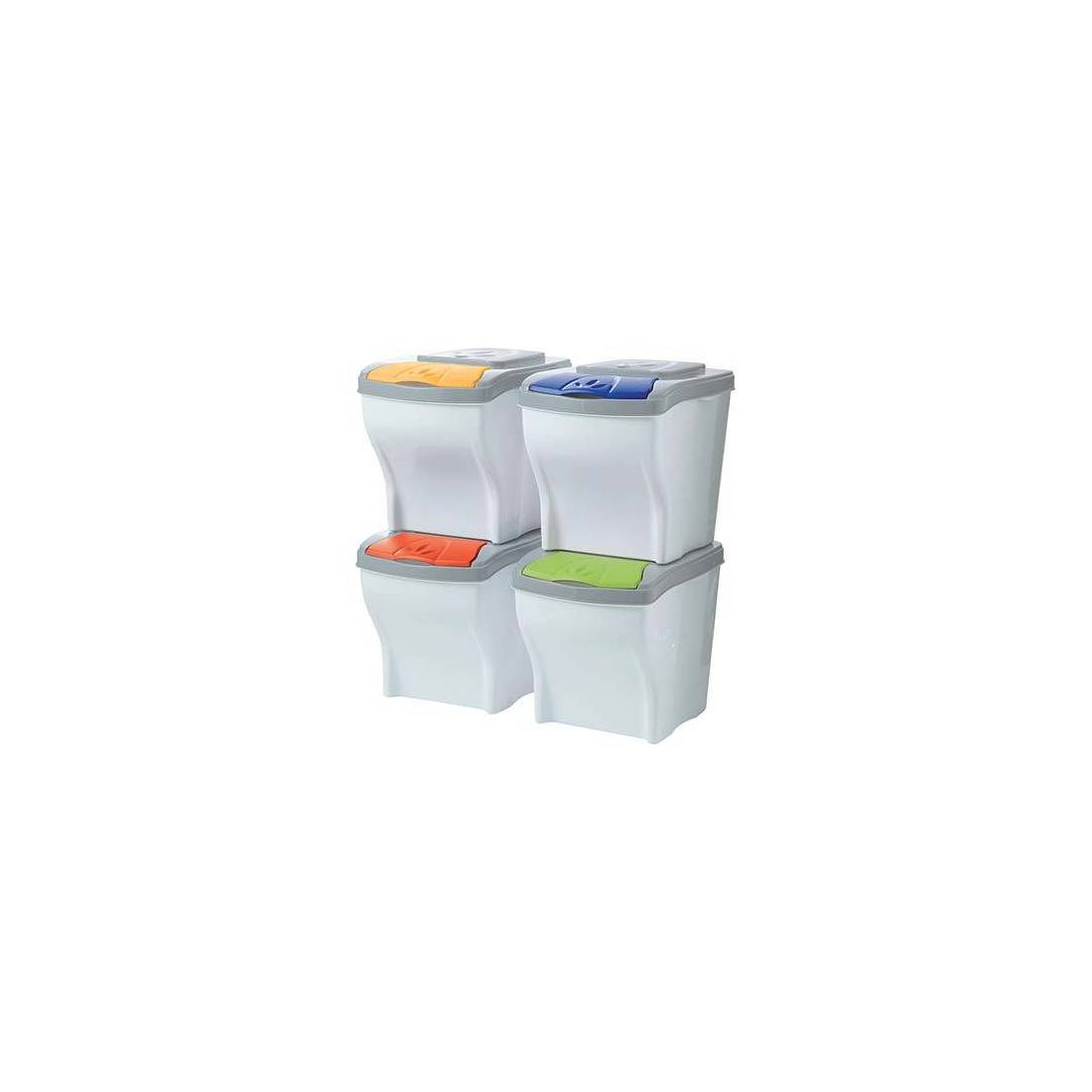 Per la raccolta differenziata componibile e modulare per essere liberi di deciderne la posizione. Permette l’utilizzo di svariate forme di sacchetti. Litri totali 80 (pattumiera singola Lt. 20). Dimensioni singola pattumiera: Cm. 28x40, altezza Cm. 31. In plastica resistente. Colori assortiti.