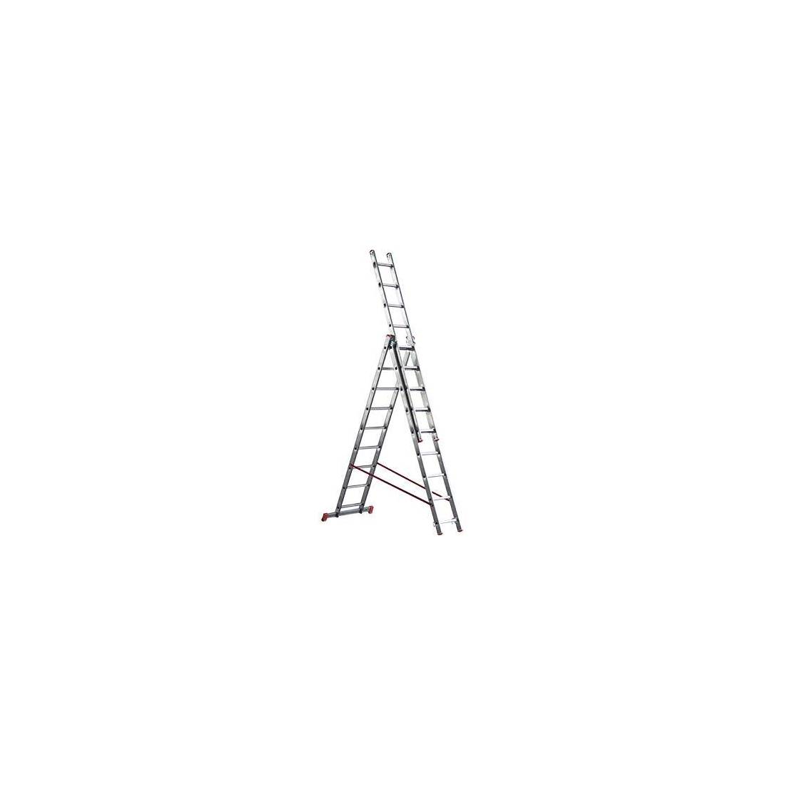 Scala a 2 elementi in alluminio. Pioli zigrinati antisdrucciolo con sezione da Mm. 28×28, con passo da Mm. 280. Base allargata per una maggiore stabilità con tacchi ergonomici maggiorati ed antiscivolo. Cinghie antiapertura. Cerniera in acciaio con apertura agevolata. Dispositivo di blocco tronchi. Angolo di apertura progettato per una comoda posizione di lavoro permette l’appoggio del corpo in tutta sicurezza. Portata massima Kg. 150. Rispondente alla normativa europea EN 131 ed al D. Lgs 81/2008 Art. 113. In dotazione chiavette e bulloneria per montaggio.