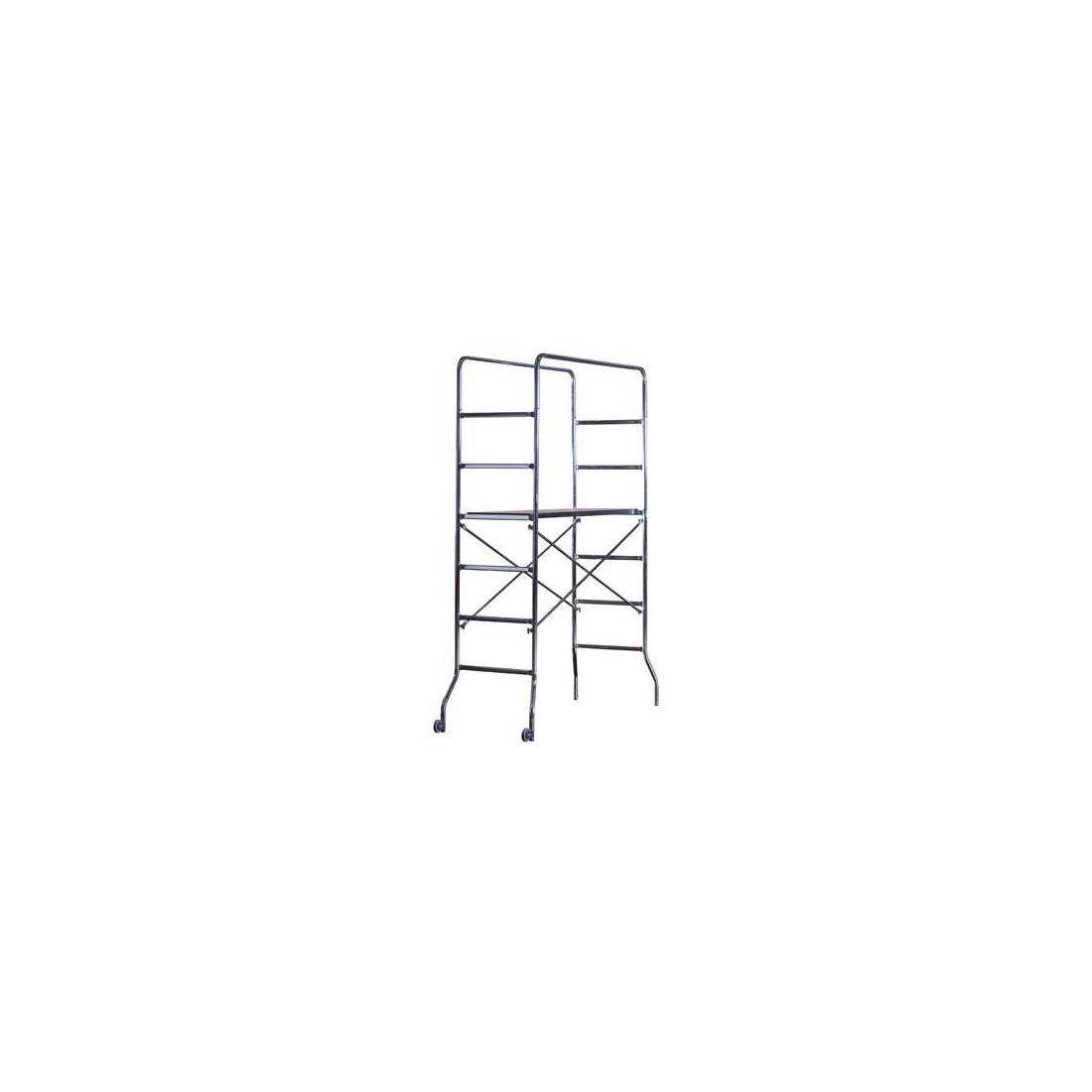 Studiato per lavori hobbistici, realizzato in acciaio zincato con montanti da Mm. 30 di diametro, completamente smontabile. Con piano di lavoro e due ruote per un facile spostamento. Dimensioni: base Cm. 169x65, altezza massima Mt. 2,18. Portata massima Kg. 120. Peso: Kg. 25.