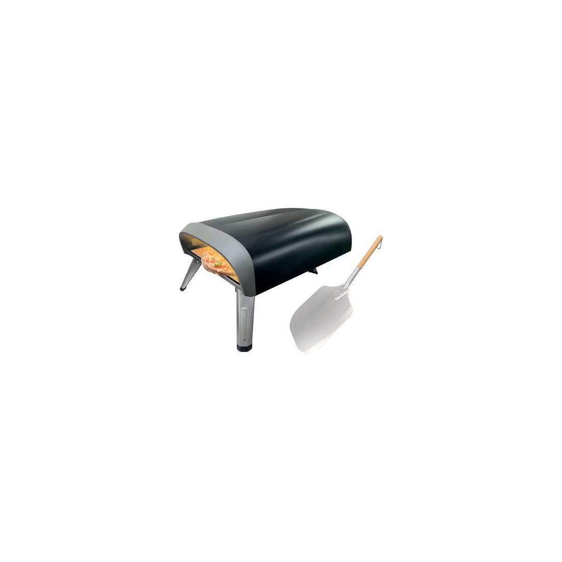 Alimentazione a gas. Potenza Kw. 4,0. Struttura in acciaio verniciato con piedi pieghevoli. Bruciatore e alloggiamento interno in acciaio inossidabile. Accensione elettronica con sistema di protezione della fiamma (FSG). In dotazione: Termometro e pala pizza. Regolatore gas e tubo non inclusi. Dimensione forno: Cm. 50x39x29. Dimensione pietra da forno: Mm. 335x335x10.