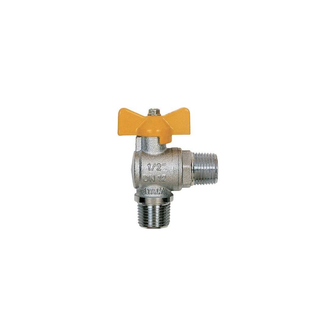 Attacchi filettati maschio/maschio. Maniglia a T bloccabile in alluminio. Corpo in ottone nichelato. Temperature minima e massima d’esercizio: -20/60°C. Certificata EN331.