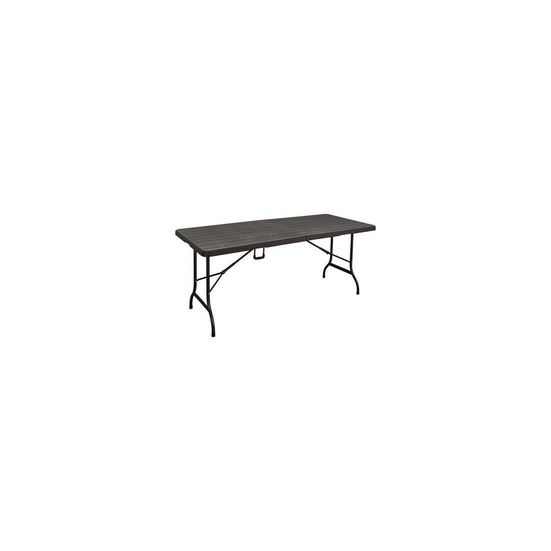 Struttura e supporti in acciaio verniciato. Superfice in HDPE simil legno di colore marrone. Richiudibile a valigia con pratica maniglia per il trasporto.