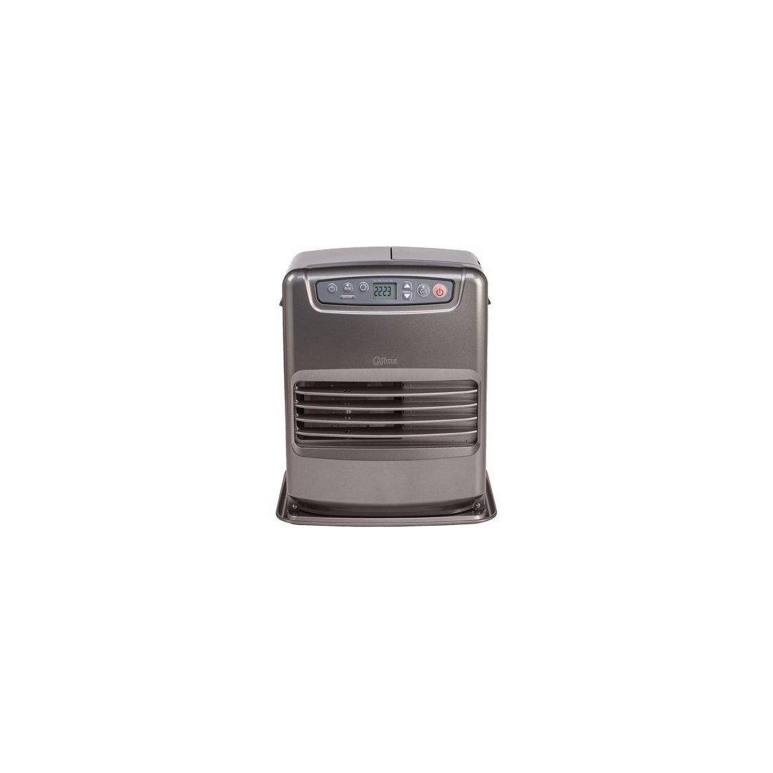 Con sistema di combustione ad iniezione elettronica. Consente di programmare l\'accensione per ottenere la temperatura desiderata all\'orario prescelto. Necessita solo di una presa elettrica e non c’è bisogno di nessuna installazione. Il programma “save” contiene i consumi, il sistema "fuzzy logic" ed il termostato permettono una migliore regolazione della temperatura, la funzione "comfort" aiuta a prolungare il tempo del rifornimento. I sistemi di sicurezza anti-ribaltamento, anti-surriscaldamento ed il blocco di sicurezza per i bambini garantiscono un uso sicuro dell’apparecchio. Capacità serbatoio Lt. 5. Superfice riscaldabile Mc. 50-120. Autonomia del serbatoio: da 16 a 44 ore. Consumo: da Lt./H. 0,113 a 0,313. Non necessita di canna fumaria. Colore grigio. Dimensioni: Cm. 37x30x43. Peso: Kg. 8,1.