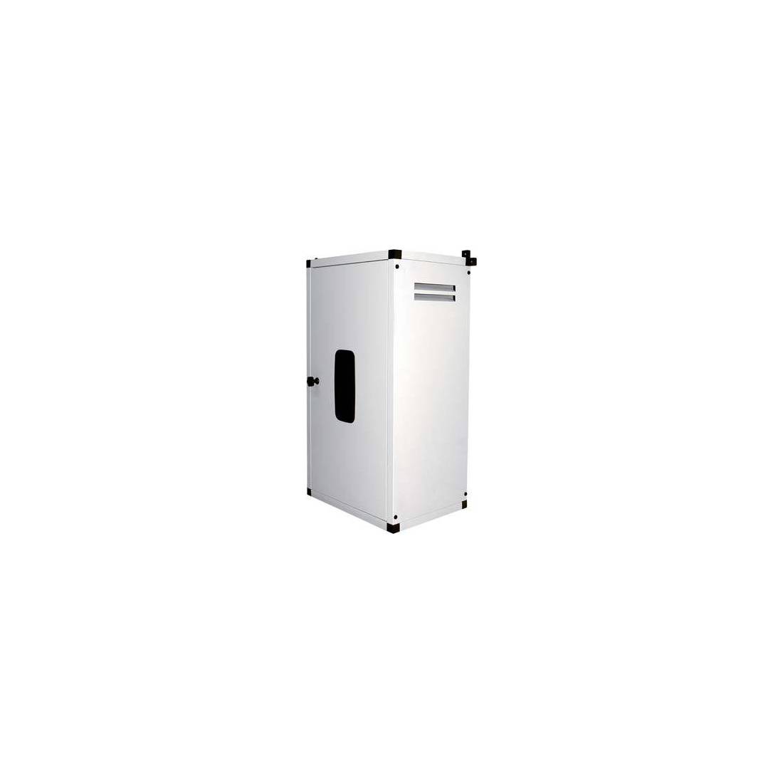 In lamiera preverniciata bianca Ral 9010 spessore16/10. Sportello reversibile, dotato di serratura universale con pomello, con oblo per la visibilità della fiamma. La parte superiore del copricaldaia presenta una apertura largamente dimensionata, per le uscite fumi delle diverse caldaie. Un altro pannello viene collocato nella parte superiore per la chiusura al vento e alla pioggia.