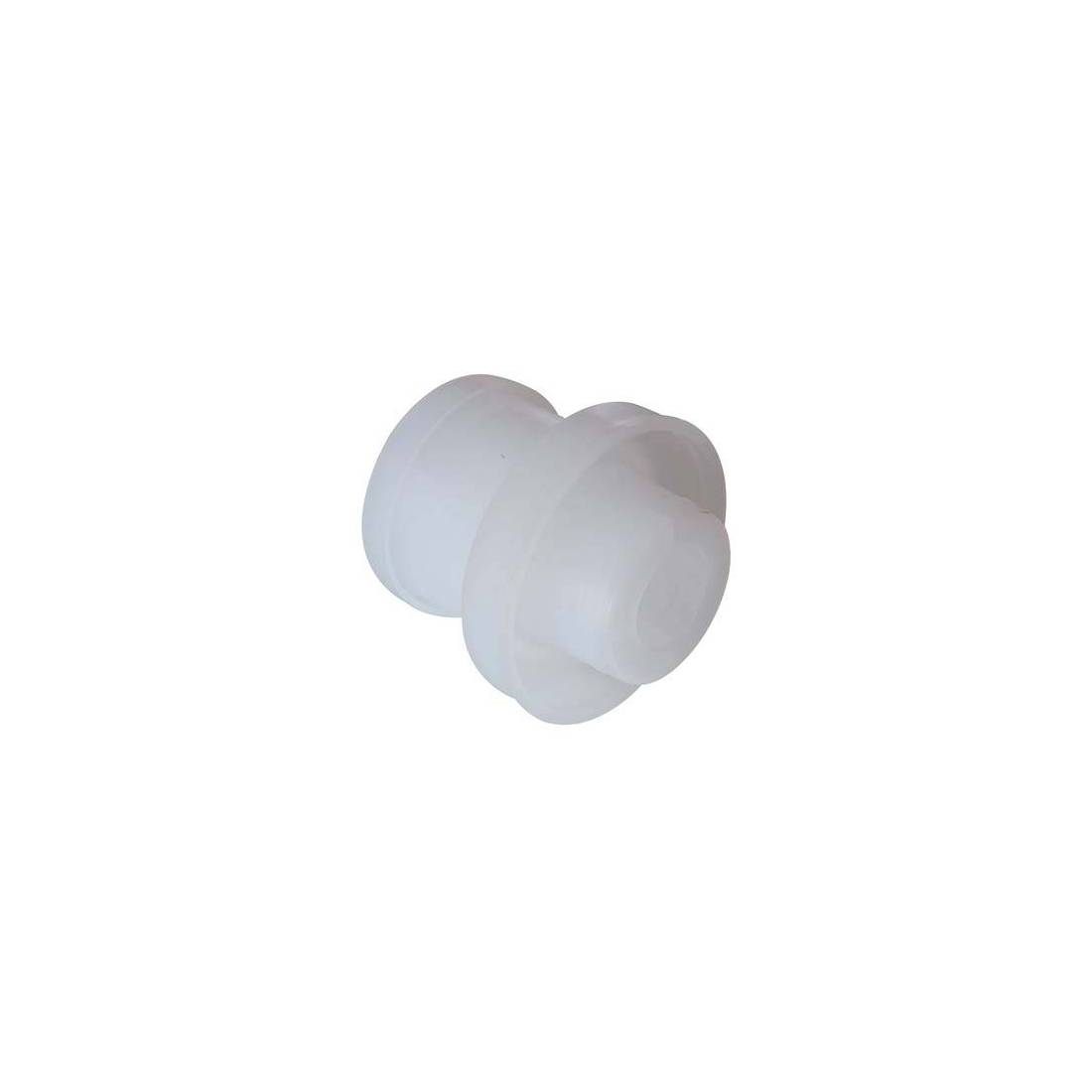 In plastica. Con doppia chiusura antipolvere, permette di rabboccare la damigiana senza dover estrarre il tappo.