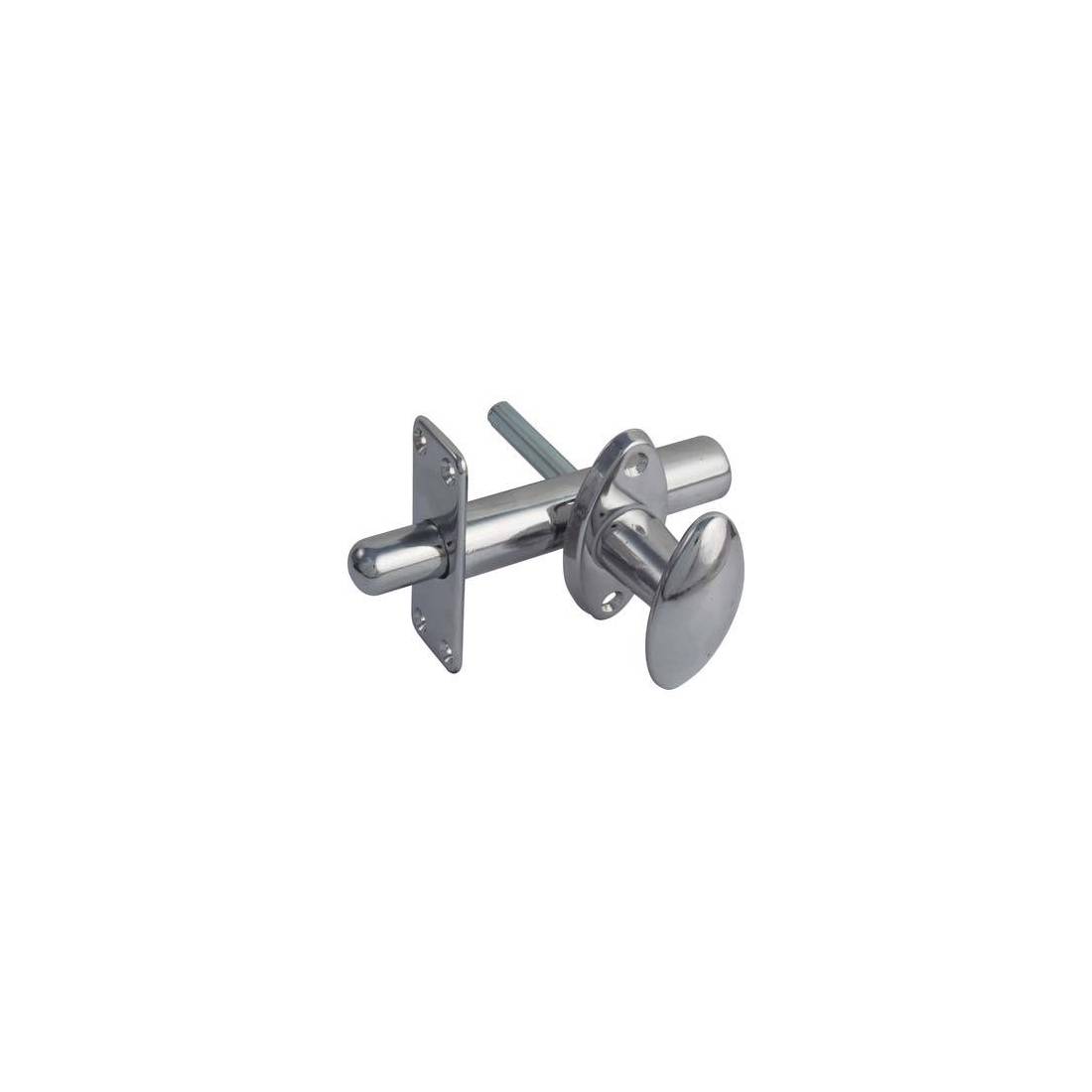 Chiusura supplementare interna. Perno in acciaio. Diametro catenaccio Mm. 14, corsa Mm. 25. Interasse Mm. 80. Completo di incontro da Mm. 24x65.