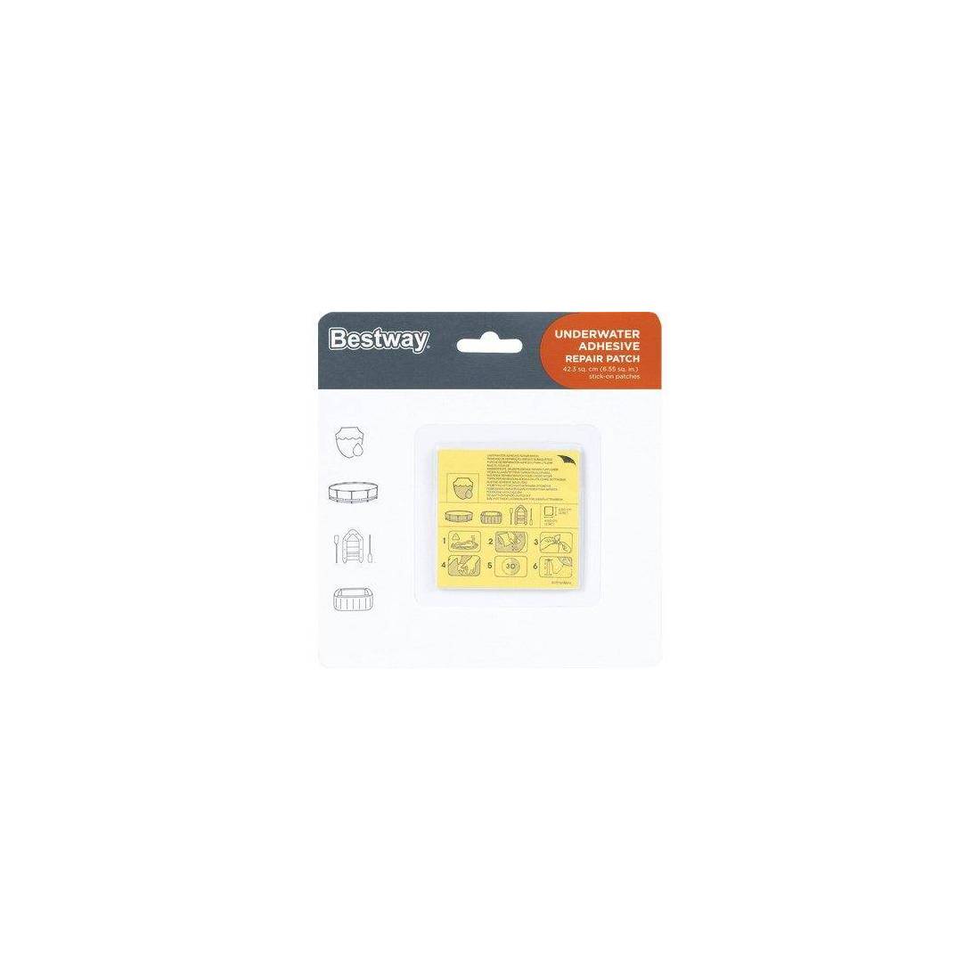 Ogni confezione include 10 toppe per uso intensivo, ottime per riparare piscine, spa e materassi gonfiabili. Può essere applicata sott\'acqua. La resistenza all\'acqua delle toppe, permette di risolvere i problemi sotto la linea di galleggiamento della vostra spa o piscina. Ogni toppa di riparazione misura Cm. 6,5x6,5. Lasciate riposare per 30 minuti prima di rimettere in funzione il vostro prodotto.