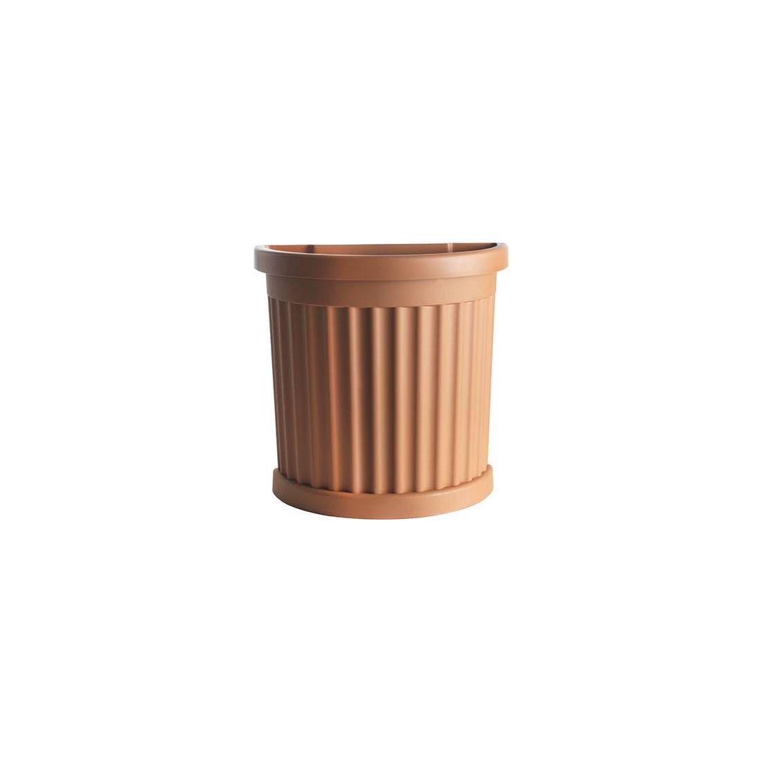 In polipropilene. Colore terracotta. Con resine certificate e atossiche, resistente agli sbalzi di temperatura, agli urti e ai raggi solari. Garantito 3 anni. Capacità Lt. 35. Provvisto di sottovaso.
