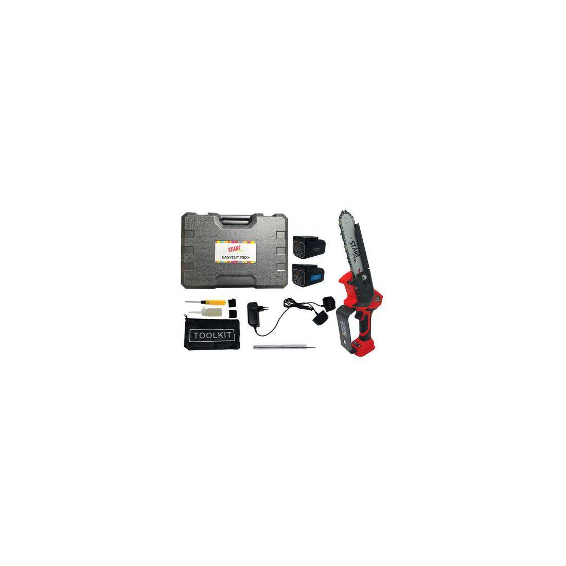 Motore Brushless Watt 500. Tempo di carica: ore 2-4. Tempo di lavoro ore 1. Blocco catena e velocità regolabile. Tensionatore catena. Con sistema di autolubrificazione. In dotazione: 1 batteria al Litio Volt 16,8 da Ah 4,0 + 1 da Ah 2,0, 1 caricabatterie doppio, valigetta ed accessori. Abbinabile con manico estensibile Art. 1100300.