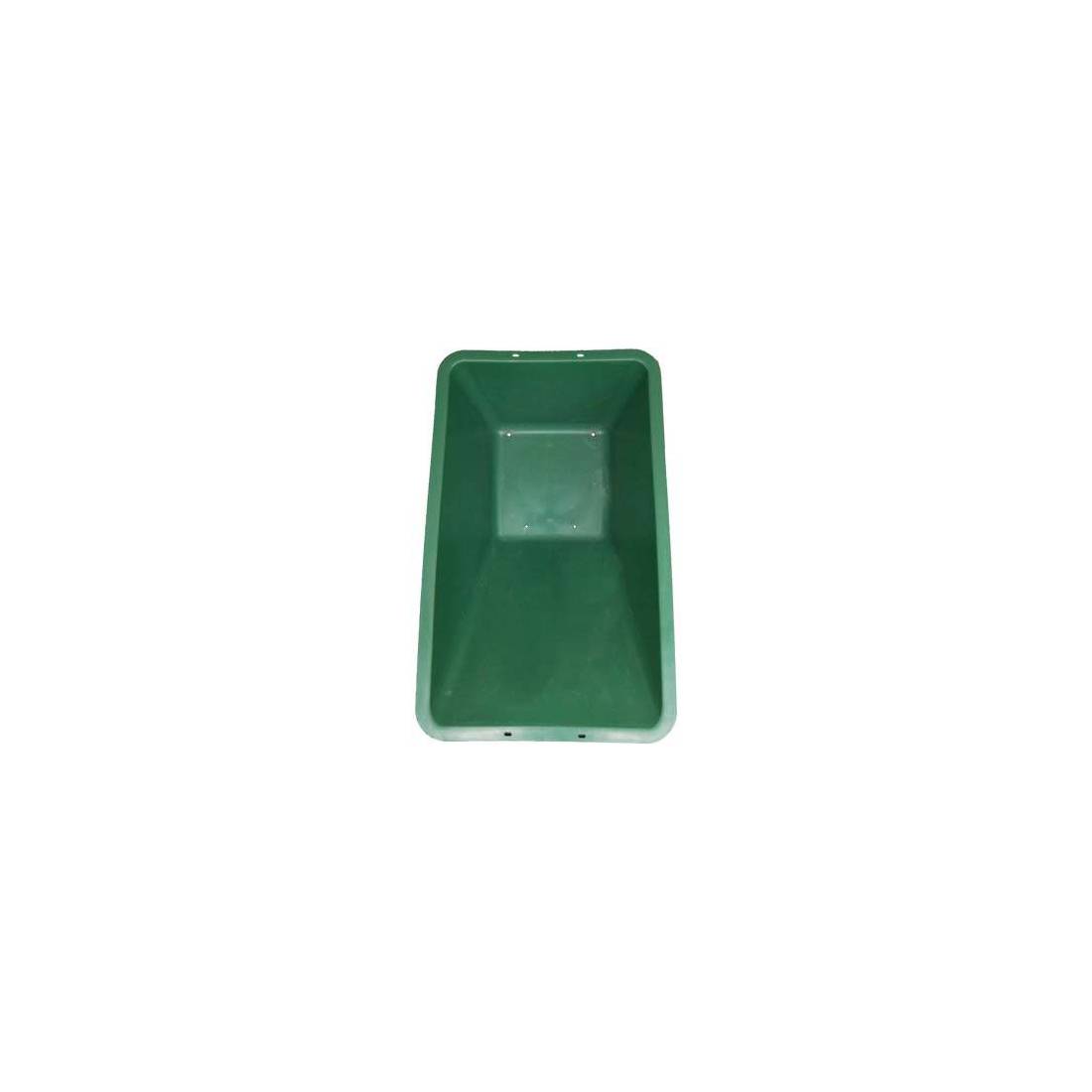Struttura in tubolare in acciaio verniciato. Vasca in polipropilene. Doppia ruota pneumatica 4.00-8". Disco in polipropilene con mozzo Mm. 130.