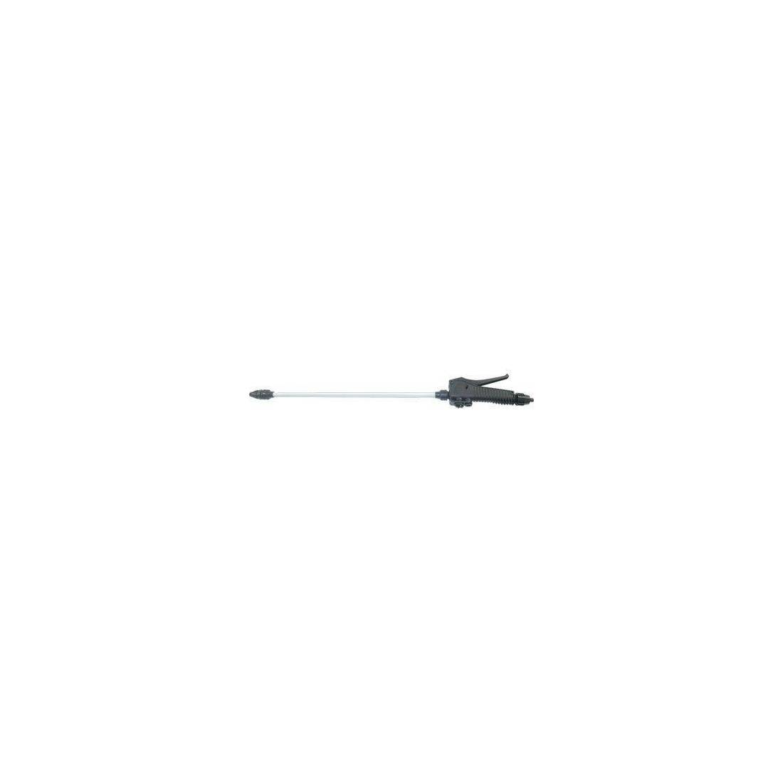 Con getto in plastica regolabile. Asta in alluminio. Impugnatura a leva in plastica.