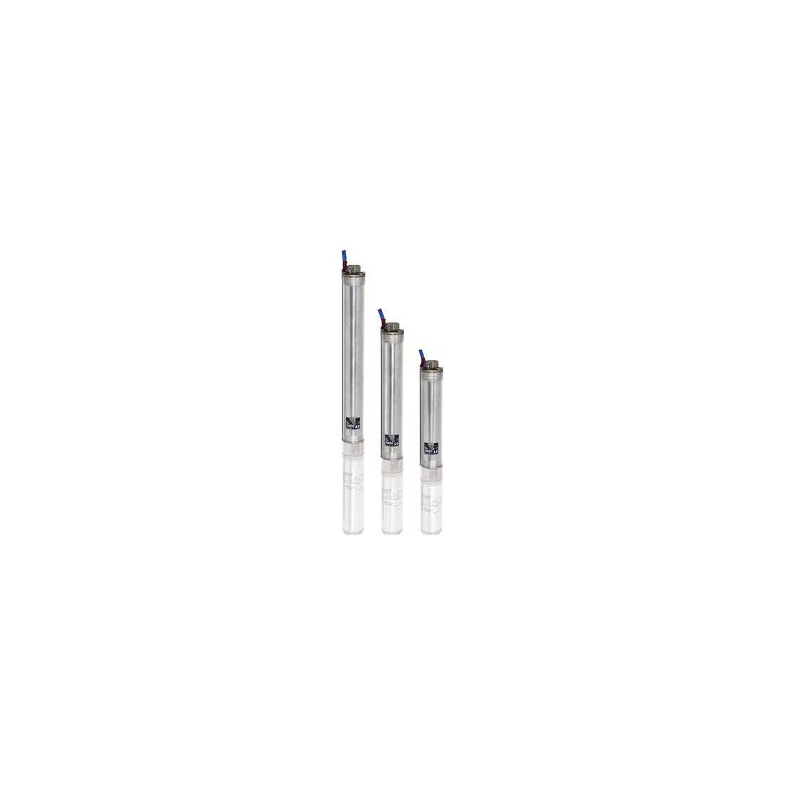 4". Per acque chiare. Giranti in tecnopolimero alloggiate nella scatola stadio con anelli di rasamento in acciaio inossidabile. Camicia pompa, albero, giunto di accoppiamento con il motore, filtro di aspirazione integrato e copri cavo in acciaio inossidabile. Supporti di aspirazione e mandata in acciaio inossidabile AISI 304 microfuso. Valvola di ritegno incorporata in tecnopolimero removibile.