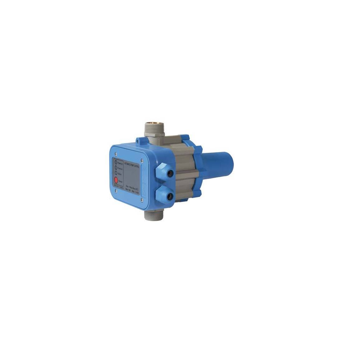 Comanda l\'avviamento e l\'arresto di una elelttropompa collegata, quando si apre o si chiude un rubinetto, proteggendola dal funzionamento a secco, dal surriscaldamento e dal colpo di ariete. Alimentazione 220V/240V, 50Hz/60Hz. Intensità massima 10A. Classe di protezione IP65. Pressione di partenza 1,5 bar (la distanza tra rubinetto e controller deve essere inferiore ai Mt. 15). Temperatura mssima 55°C. Connettore maschio da 1/2".