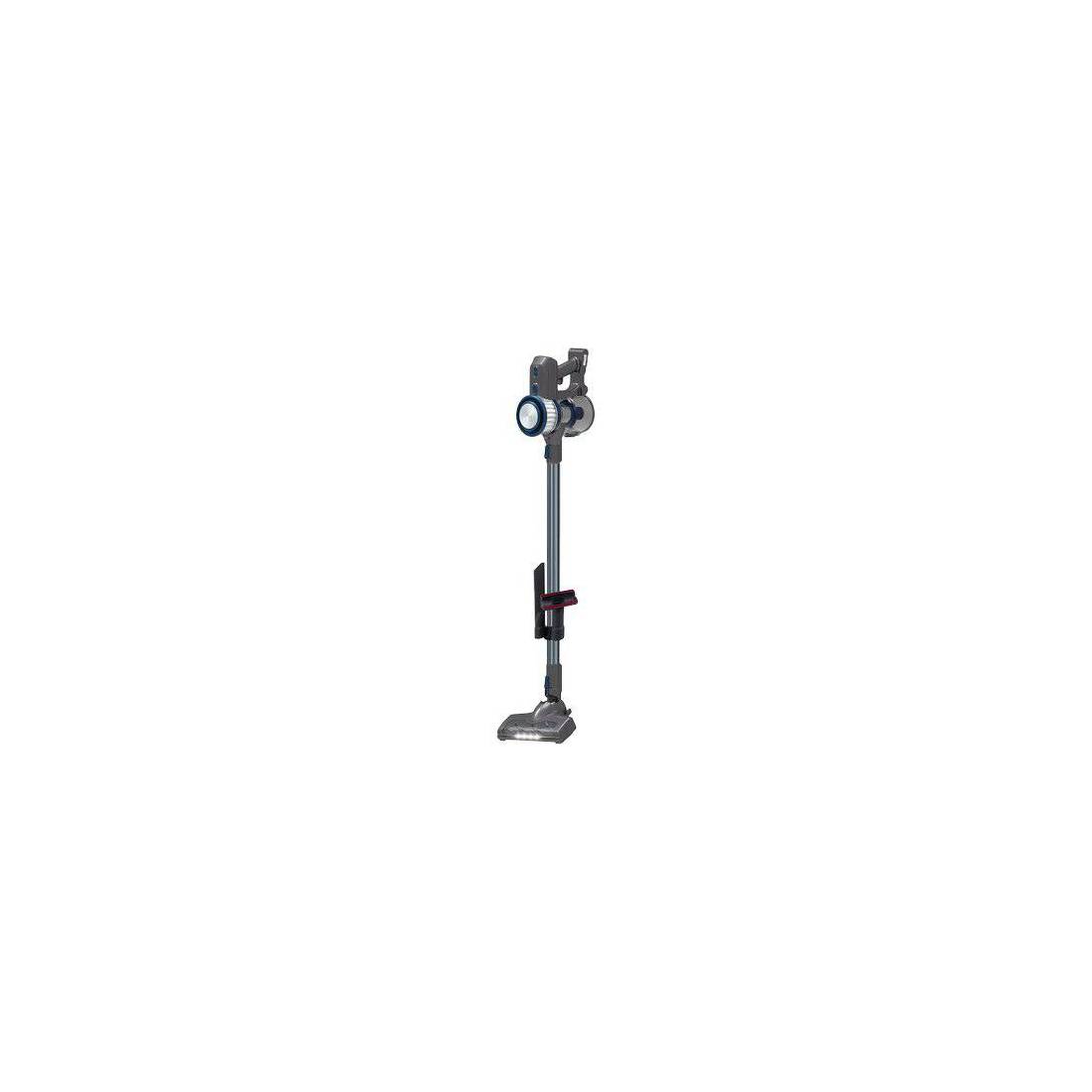 Con batteria al litio. Sistema di filtraggio multiciclonico, dotata di Turbo-Spazzola con luci LED ad alta intensità. 2 velocità. Corpo motore separabile, diventa aspirapolvere portatile-aspirabriciole. Serbatoio trasparente Lt. 0,7. Filtro completamente smontabile e lavabile. Resta in piedi da sola, leggera, facile da usare e da pulire, minimo ingombro grazie al supporto integrato sul tubo. Completa di accessori: beccuccio a lancia e per tessuti, riponibili nel manico, supporto a parete, supporto integrato sul tubo per accessori e corpo motore, e base di ricarica.
