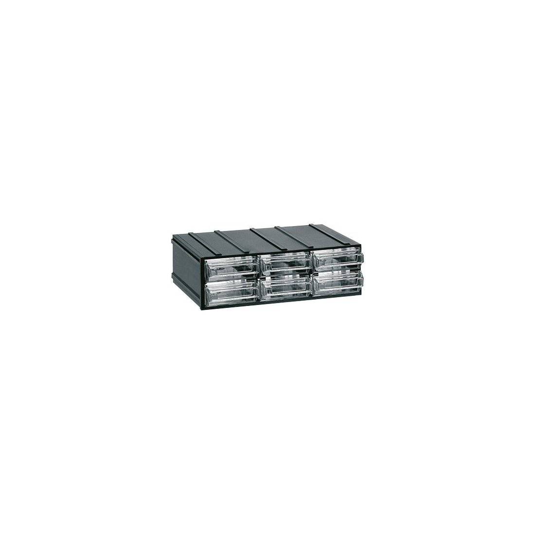 Struttura in plastica resistente. Con cassetti trasparenti dotati di porta etichetta frontale. Sistema modulare.