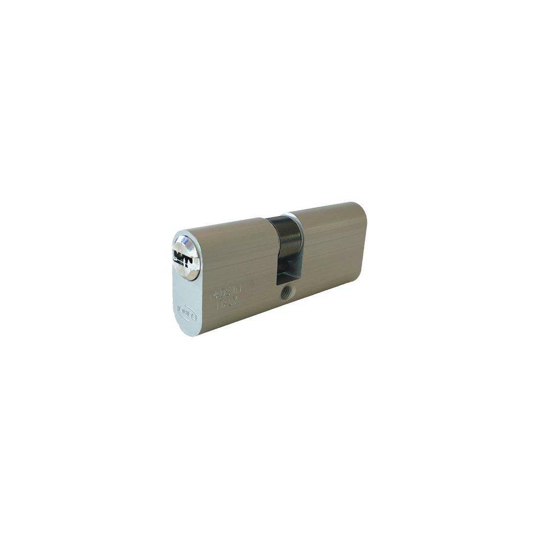 Corpo in alluminio. Cilindretti in ottone nichelato. Perni in acciaio inox. Controperni in ottone. Molle in bronzo fosforoso. Camma verticale in acciaio autolubrificante. Fornito con 3 chiavi punzonate con numero di codice e vite di fissaggio.