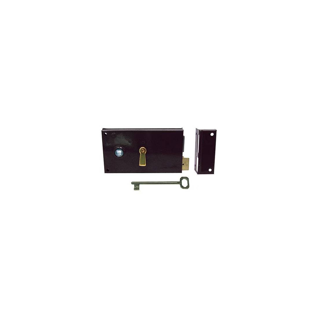 A mappa. Scrocco. Chiusura con catenaccio a 2 mandate. Quadro maniglia Mm. 6. Altezza scatola Mm. 80. In acciaio verniciato marrone. In dotazione: 2 mostrine, 1 bocchetta e 2 chiavi patent.
