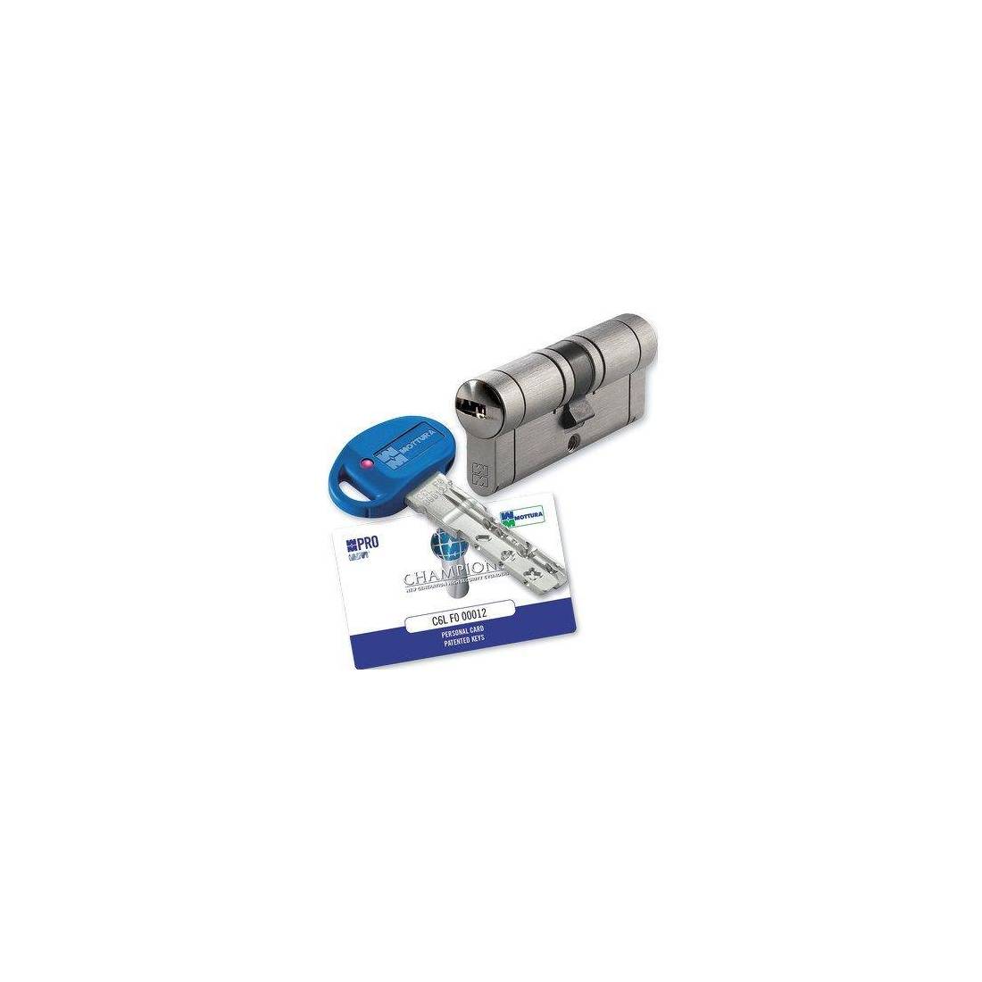 Corpo e cilindretto in ottone. Anti-bumping, anti-picking ed anti-tracing. La sua chiave presenta controlli profilo "in asse" sagomati (con simboli matematici +x-/), laterali e profilo MM brevettati: due innovazioni esclusive Mottura a protezione dei duplicati. La duplicazione chiavi è consentita solo presso i Centri autorizzati con contratto di nomina Mottura Point Viridex. In dotazione: 5 chiavi + 1 chiave cantiere. Frizionato.