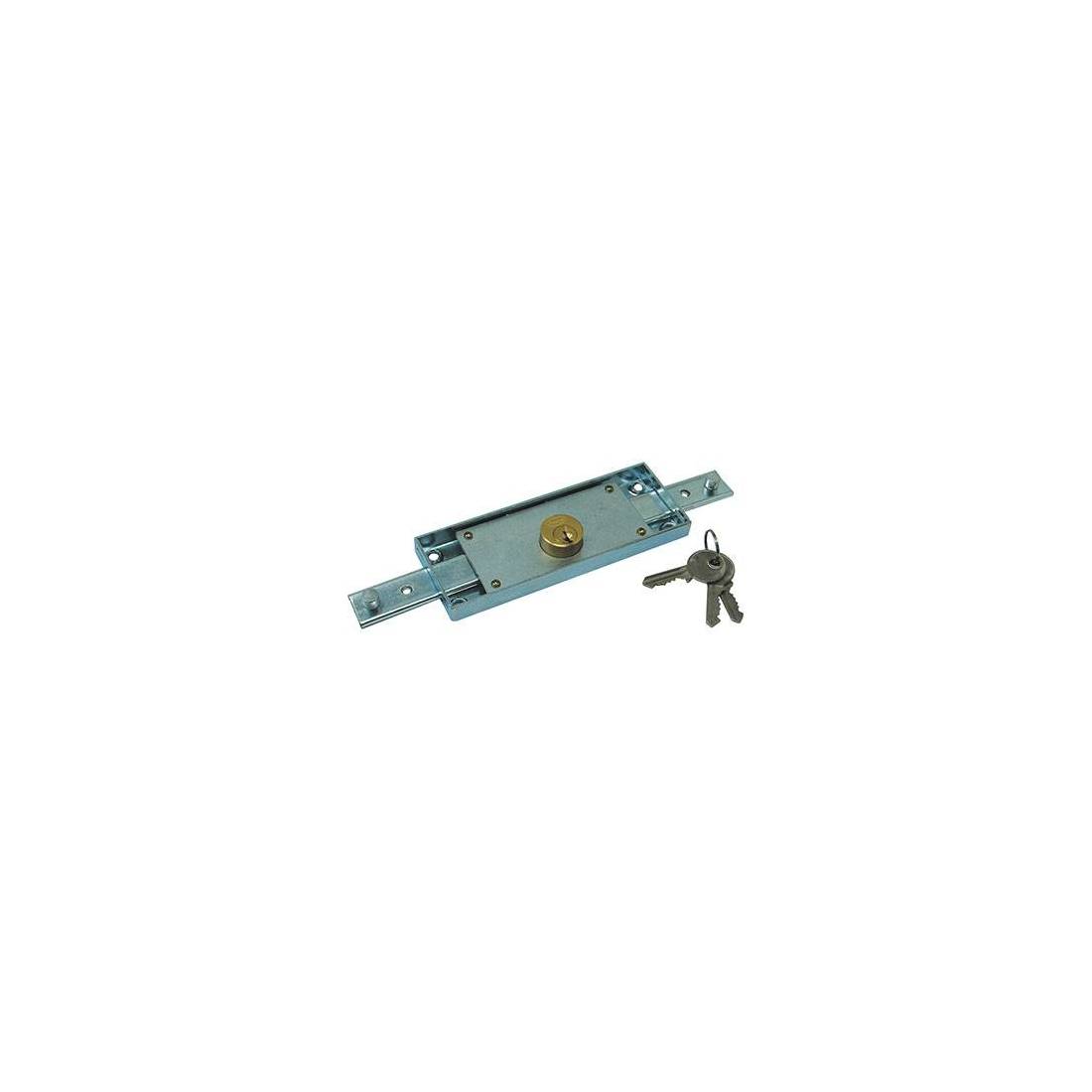 Con cilindro tondo fisso da Mm. 25 di diametro. Per installazione centrale con catenacci dritti a 1 mandata. Corsa catenacci Mm. 25. Scatola in acciaio zincato da Mm. 155x56, spessore Mm. 15. In dotazione: 3 chiavi piatte.