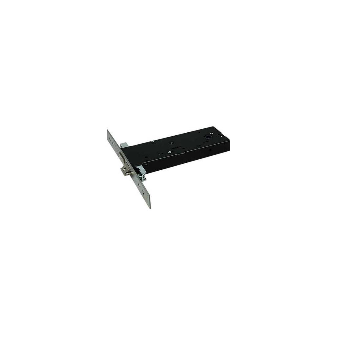 A doppia mappa. Scrocco reversibile. Chiusura triplice, con catenaccio a 4 mandate. Quadro maniglia Mm. 8. Frontale in acciaio inox con bordo quadro da Mm. 25x241. Altezza scatola Mm. 64. In dotazione: 3 chiavi, coppia borchie.