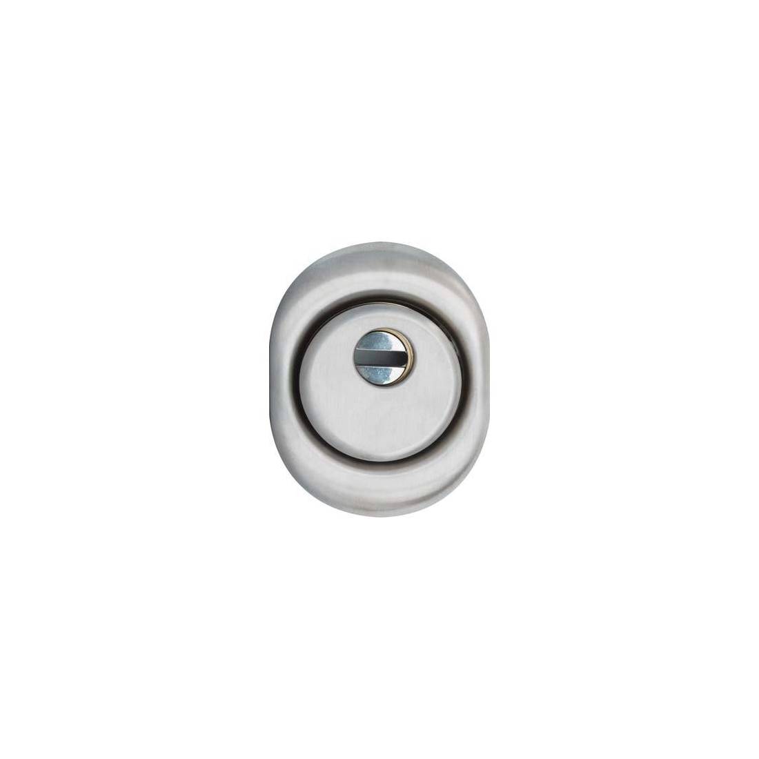 Per porte blindate con cilindro sagomato. Corpo in acciaio temperato e copertura in ottone. Mostrina in acciaio inox antistrappo, intercambiabile e regolabile. Per protezioni da Mm. 50 di diametro.