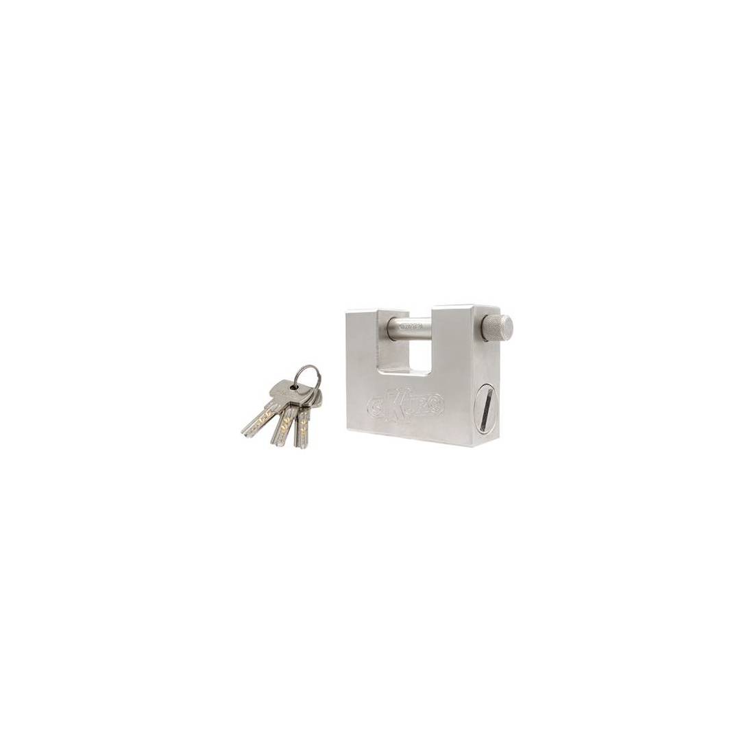 Monoblocco in acciaio carbonitrurato cromo lucido. Asta di chiusura in acciaio cementato cromato. Cilindro di sicurezza a 6 pistoncini dotato di piastrina Defender antitrapano e antieffrazione. Chiave estraibile a lucchetto chiuso. Pistoncini e contro-pistoncini in ottone. Molle in bronzo fosforoso. Fornito con 3 chiavi punzonate.