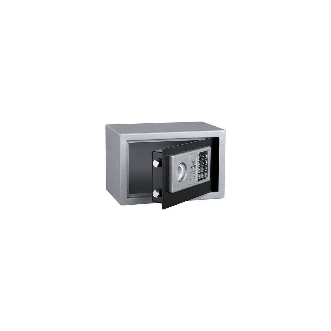 Con serratura elettromagnetica ad alta sicurezza. Codice utente: da 3 a 8 cifre. Codice passepartout: da 3 a 8 cifre. Chiave di sblocco di emergenza. Alimentazione con 4 pile stilo 1,5V (tipo AA LR6). In dotazione: 1 chiave d’emergenza, 4 tasselli di fissaggio e 1 tappetino.