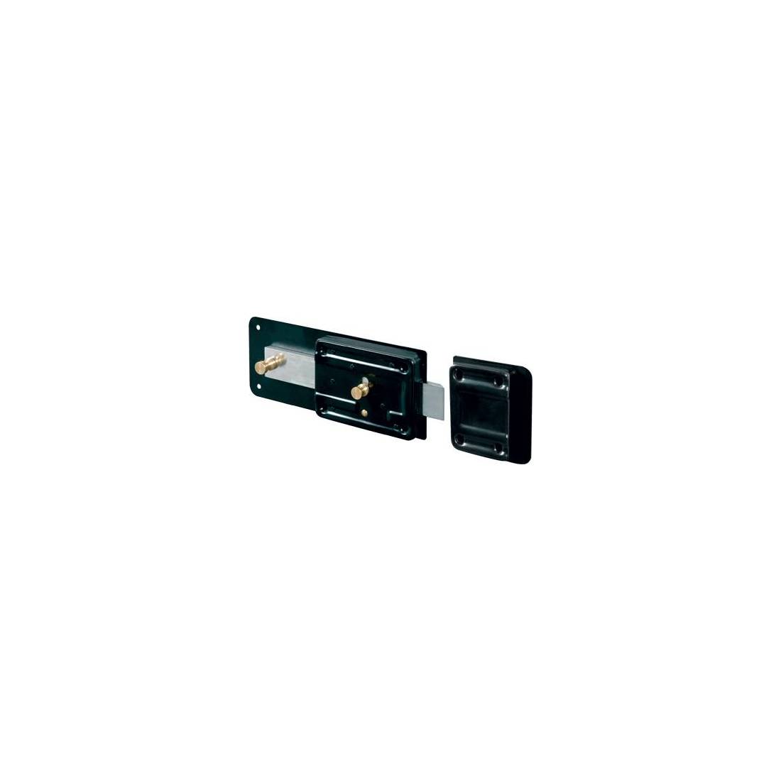 Con cilindro esterno fisso e pomolo interno. Scrocco con catenaccio incorporato. Chiusura a 5 mandate e mezzo, corsa Mm. 75. Scatola Mm. 215x90. Bocchetta Mm. 76x90. In acciaio verniciato. In dotazione: 1 bocchetta, 1 ghiera, 3 chiavi piatte e viti di fissaggio.