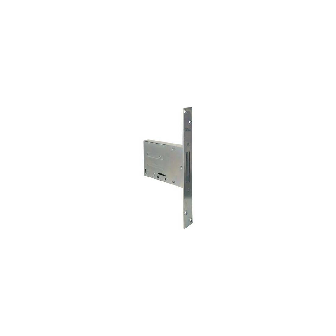 A doppia mappa. Chiusura con catenaccio a 4 mandate da Mm. 9. Frontale in acciaio zincato con bordo quadro zincato Mm. 25x240. Altezza scatola Mm. 82. In dotazione: 2 chiavi e 2 guida chiave zincate.