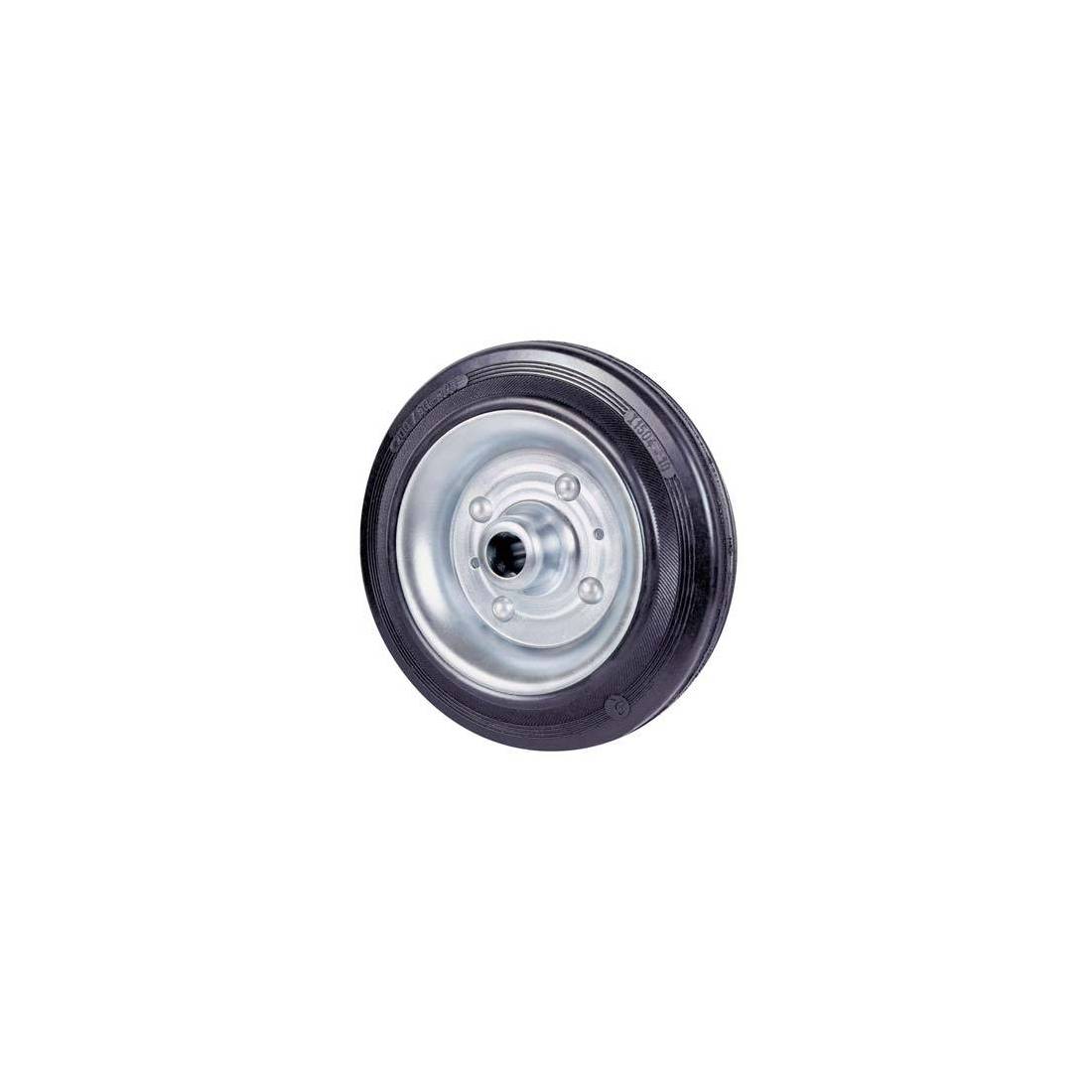 Con rivestimento in gomma piena e flange in acciaio stampato zincocromato. Mozzo su gabbia a rulli.