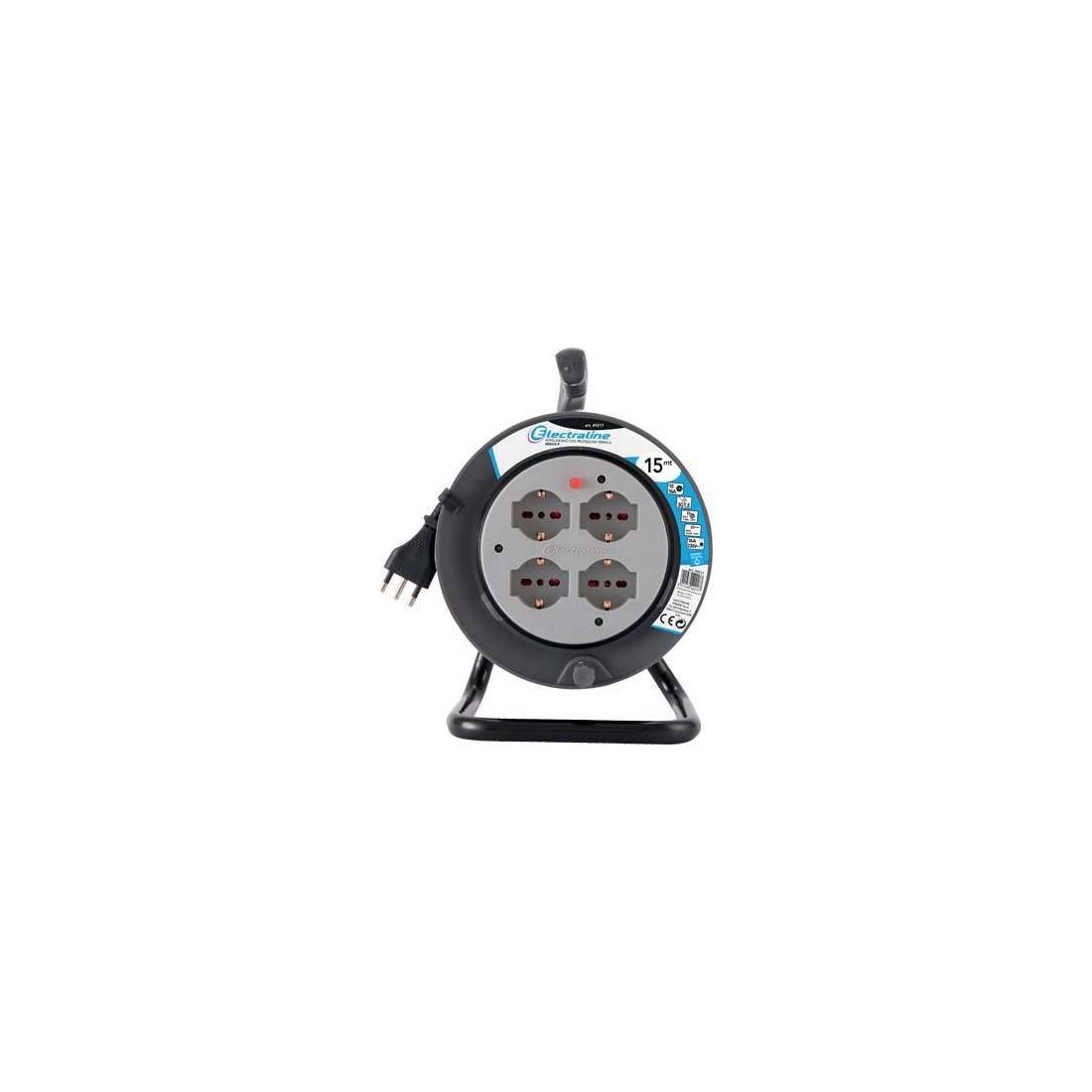 Con spina italiana da 16A 2P+T, tipo S17. Cavo tipo H05VV-F da Mmq.3x1,5. Disgiuntore a riarmo manuale. 4 prese schuko 10/16A 2P+T. Tutte le prese sono dotate di children safety, impedisce di introdurre corpi estranei nella presa in tensione. Con struttura portante in acciaio.