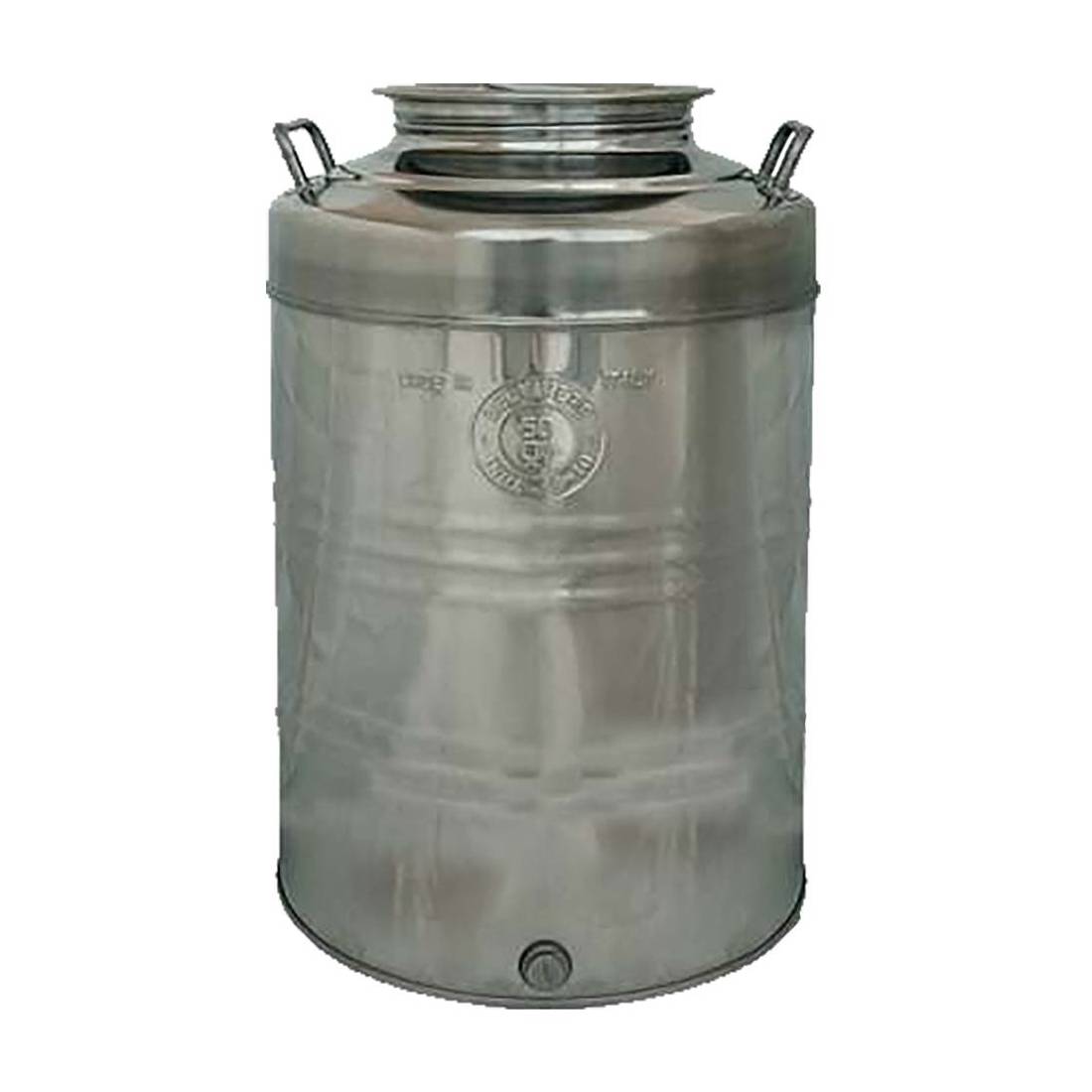 In acciaio inox 18/10 Aisi 304. Fondo aggraffato con tappo a vite a chiusura ermetica. Ampia apertura superiore (Ø 200 mm) che facilita il riempimento e la pulizia. Ideale per la conservazione di olio e per il trasporto di olio, vino e acqua. Predisposto per rubinetto 1/2. Fornito senza rubinetto.