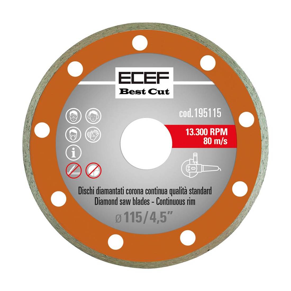 Corona continua liscia. Idoneo per ceramica. Rotazioni 80-13300 g./min. Foro mm 22,23.