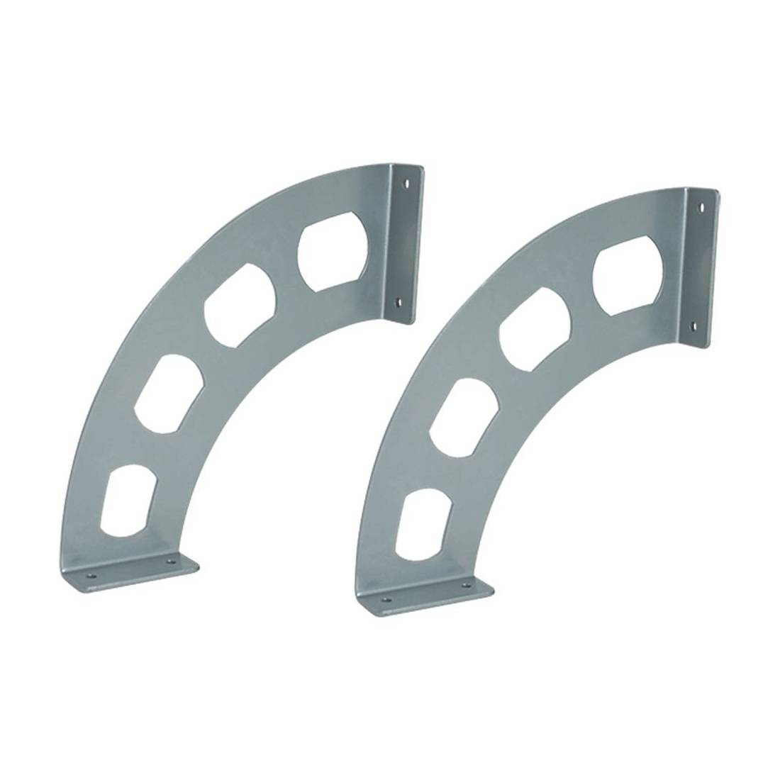 In acciaio verniciato a polveri epossidiche. Dimensioni: mm. 190x180. Spessore mm. 26, fori fissaggio Ø mm. 5. Portata max 30 kg.