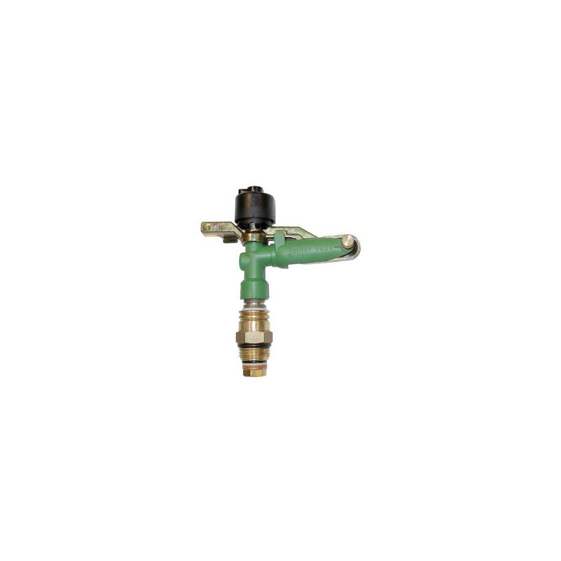 In ottone, lega leggera e rilsan. 1 getto con rompigetto regolabile. Per l\'irrigazione sottochioma di vigneti e frutteti, serre e zone fortemente ventilate. Attacco con filettatura maschio. Pressione: da 1,5 a 4 bar. Gittata: da Mt. 5,5 a 8. Portata Lt./Min. da 9 a 15. Superficie irrigata: da Mq. 95 a 201. Inclinazione a 4°.