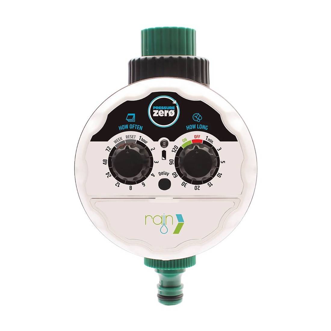 Indicata per irrigazione a goccia. Particolarmente adatta in caso di bassa pressione dell'impianto. Permette fino a 24 irrigazioni giornaliere della durata da 1 a 120 minuti di irrigazione manuale. Ingresso filettato 3/4 in ABS - 1 F in ABS. Uscita filettata 3/4 M in ABS + raccordo rapido. Irriga fino a 2 zone. Alimentazione: 2 batterie da 1,5V AAA (non incluse). Temperatura di funzionamento: da 5 gradi C a 60 gradi C. Pressione di esercizio: 0.5 bar a 8 bar. Portata minima/massima: da 0 a 30 litri al minuto.